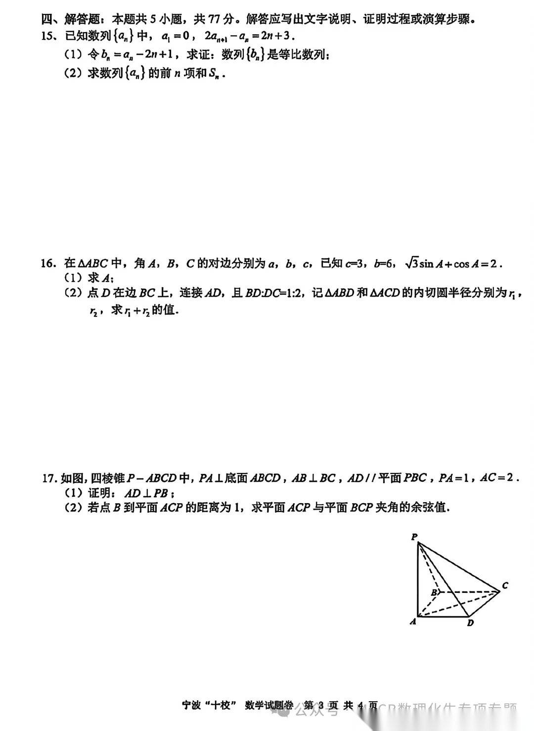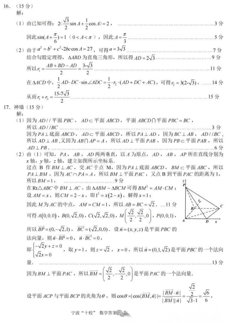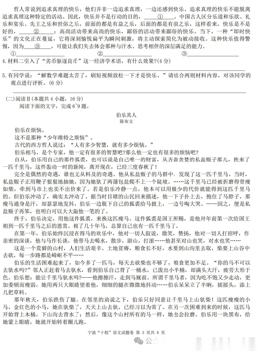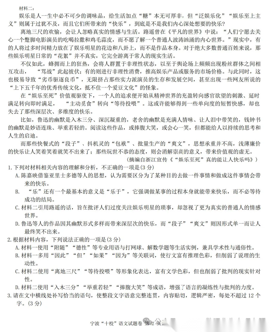 【浙江卷】浙江省宁波十校2026届高三年级3月联考(3.18-3.20) 数学物理英语语文地理政治试题卷+答案