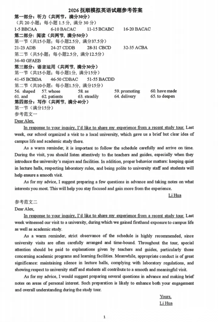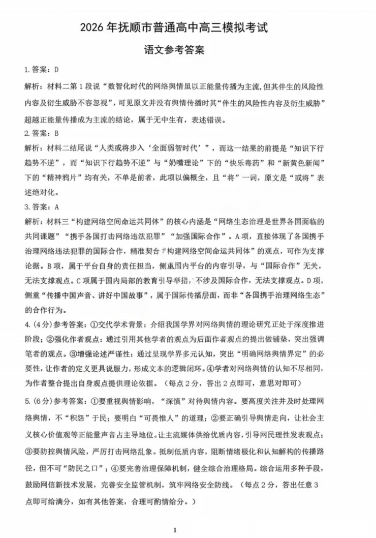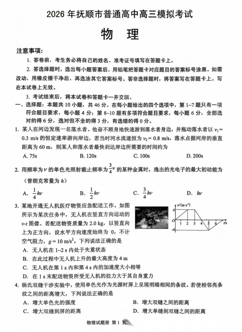 【黑吉辽蒙卷】辽宁省2026年抚顺市普通高中应届毕业生高三年级高考模拟考试(抚顺一模)(3.17-3.19) 全科试题卷+答案