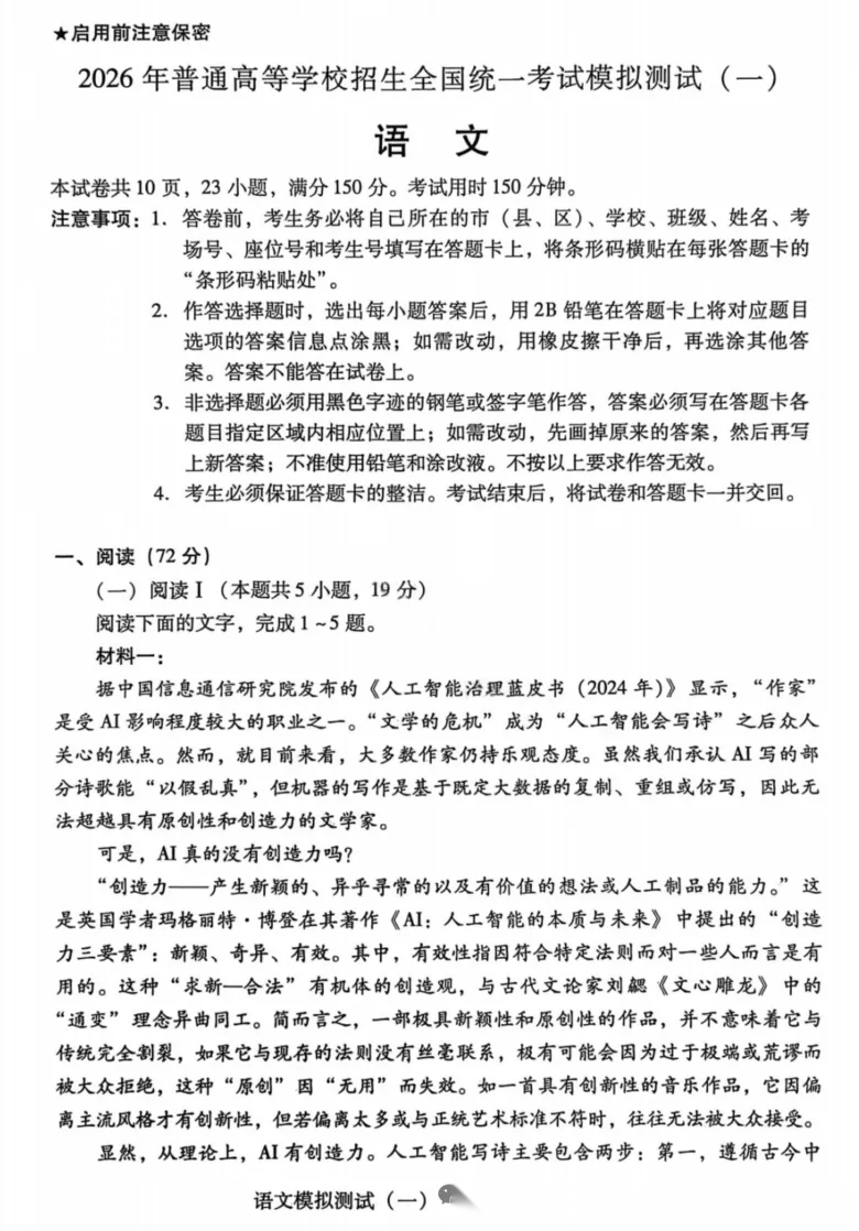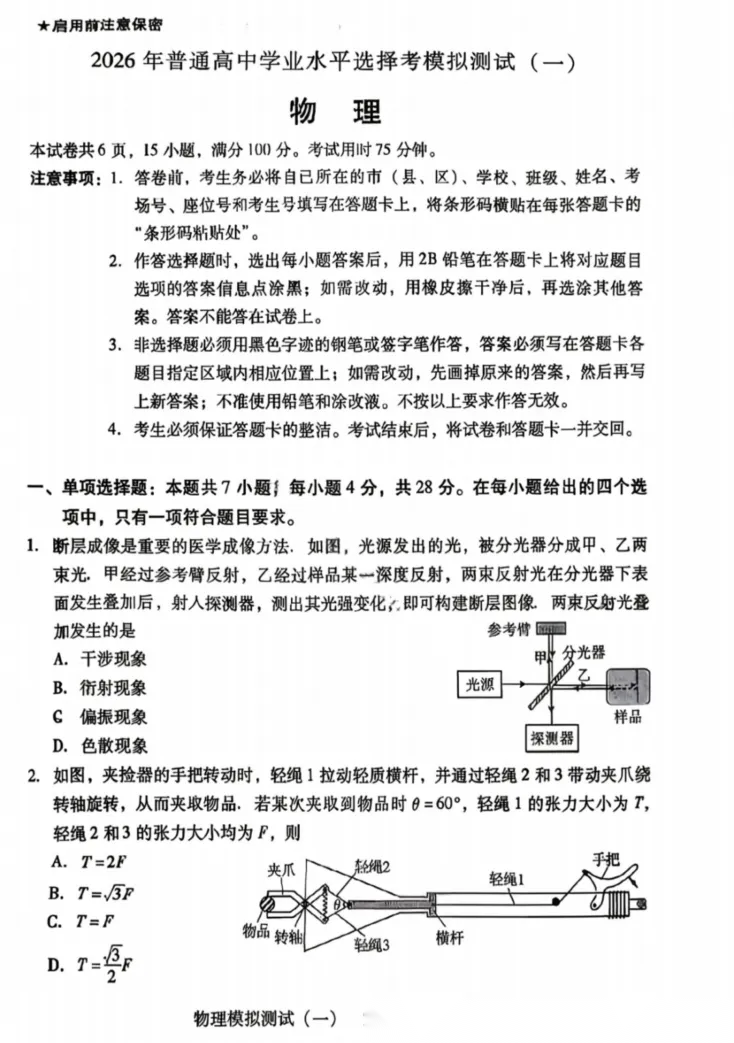 【广东卷】广东省2026年普通高等学校招生全国统一考试模拟测试(一)(广东一模)(3.17-3.19) 全科试题卷+答案