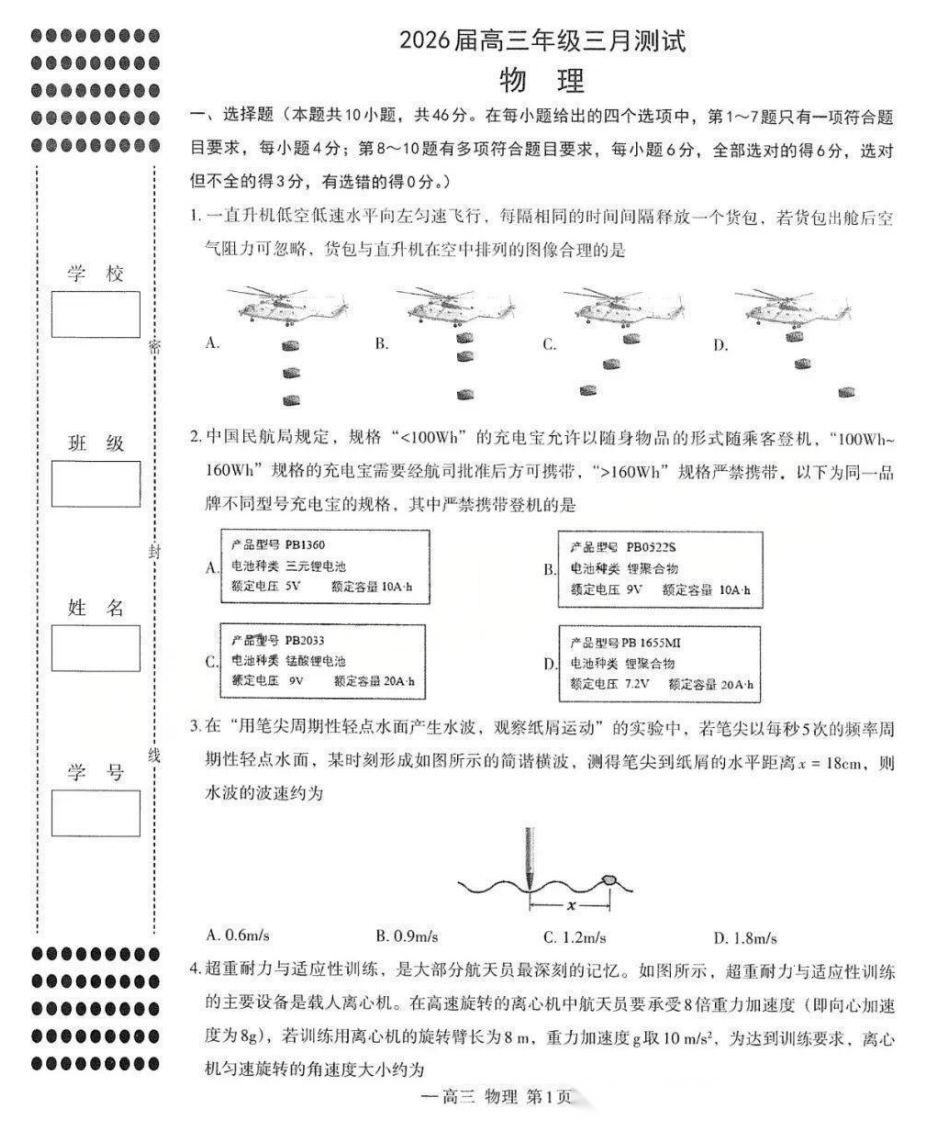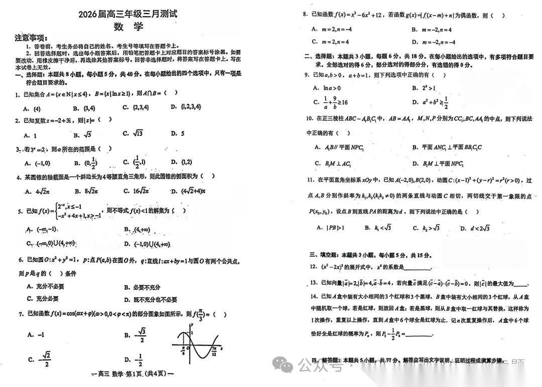 【广东卷】广东省2026年普通高等学校招生全国统一考试模拟测试(一)(广东一模)(3.17-3.19) 全科试题卷+答案 【广东卷】广东省2026年普通高等学校招生全国统一考试模拟测试(一)(广东一模)(3.17-3.19) 全科试题卷+答...