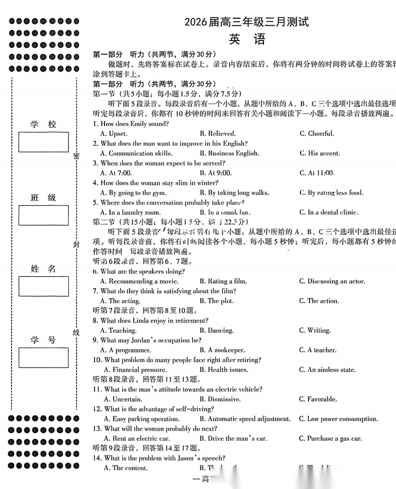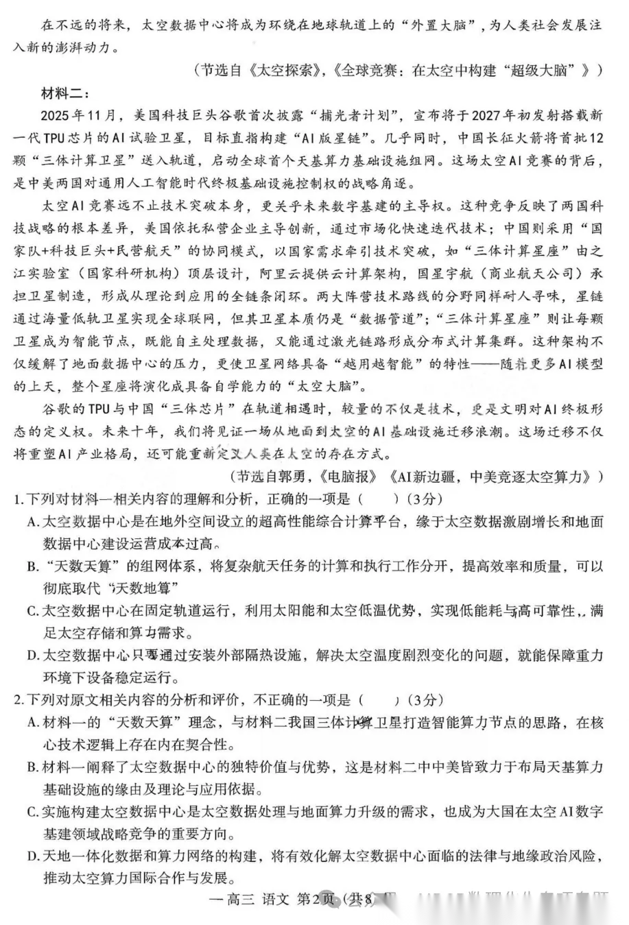 【四川卷】四川省部分学校金太阳2026届高三下学期3月联考(26-157C)(3.17-3.18) 全科试题卷+答案 【四川卷】四川省部分学校金太阳2026届高三下学期3月联考(26-157C)(3.17-3.18) 全科试题卷+答案