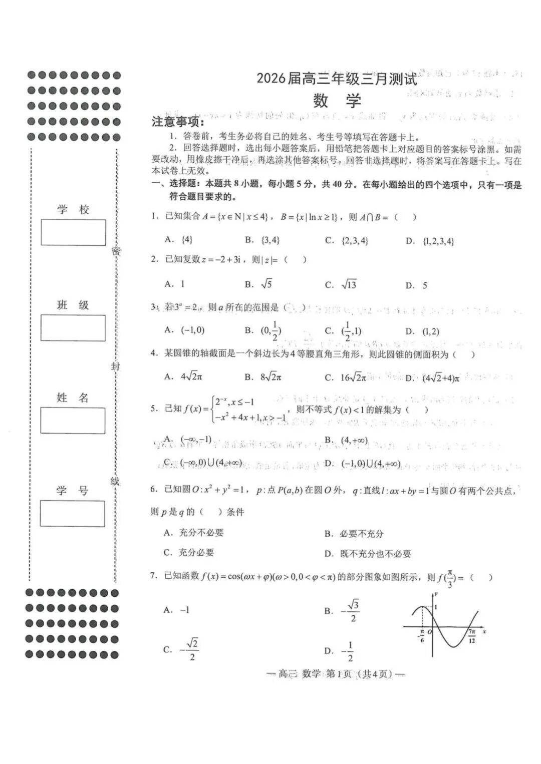 【补齐重发】【四川卷】四川省内江市2026届高三年级第二次模拟考试试题(内江二诊)(3.16-3.18) 全科试题卷(含日语)+答案 【补齐重发】【四川卷】四川省内江市2026届高三年级第二次模拟考试试题(内江二诊)(3.16-3.18) ...