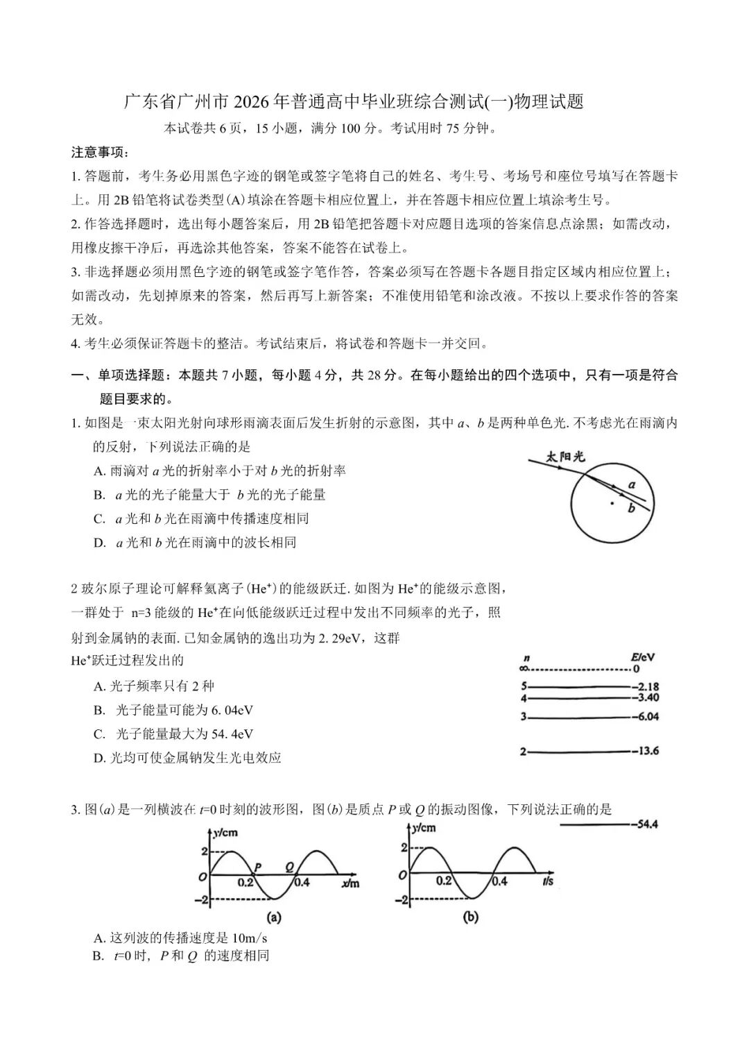 【全科】广州一模|2026 年广州市普通高中毕业班综合测试(一)