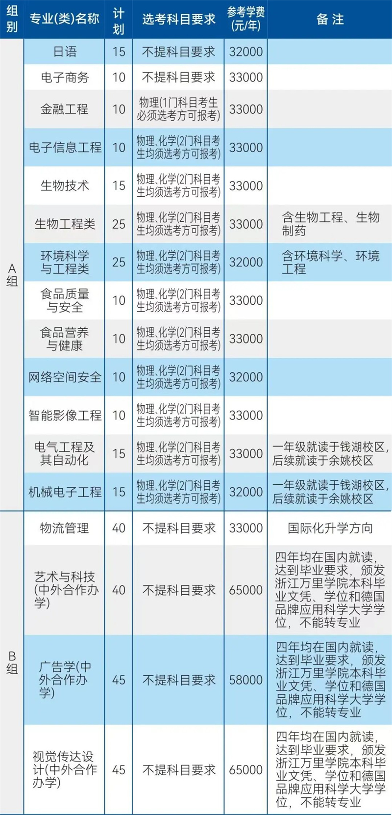 | 2027 | 浙江万里学院 | 物理 | 广告学 | 不限 |