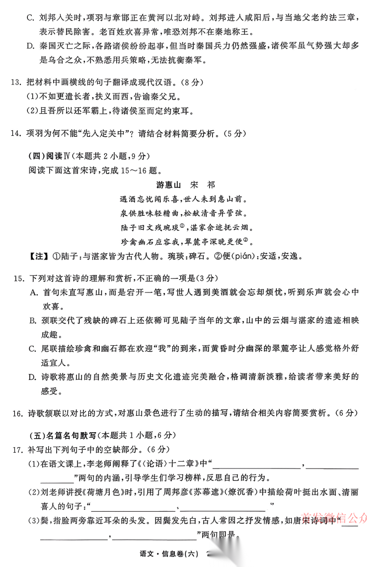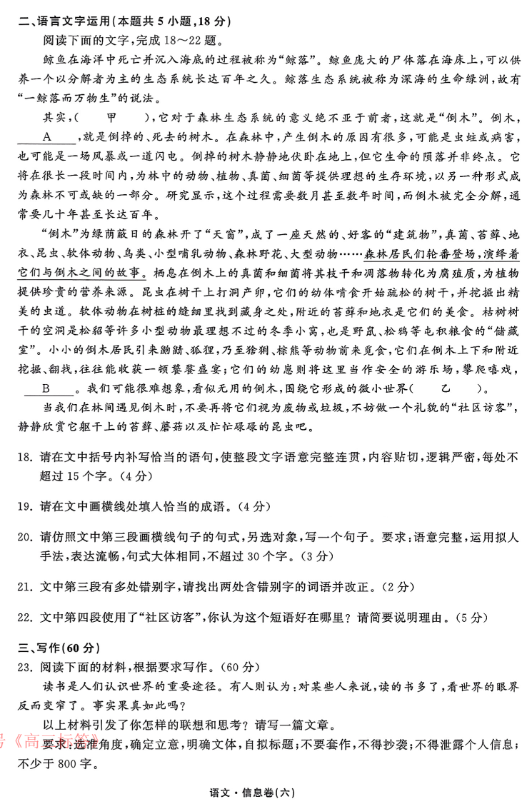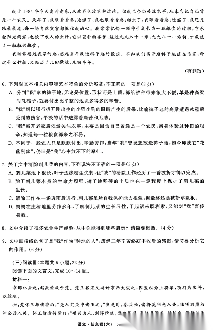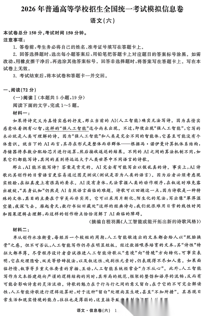 2026年普通高等学校招生全国统一考试模拟信息卷六
