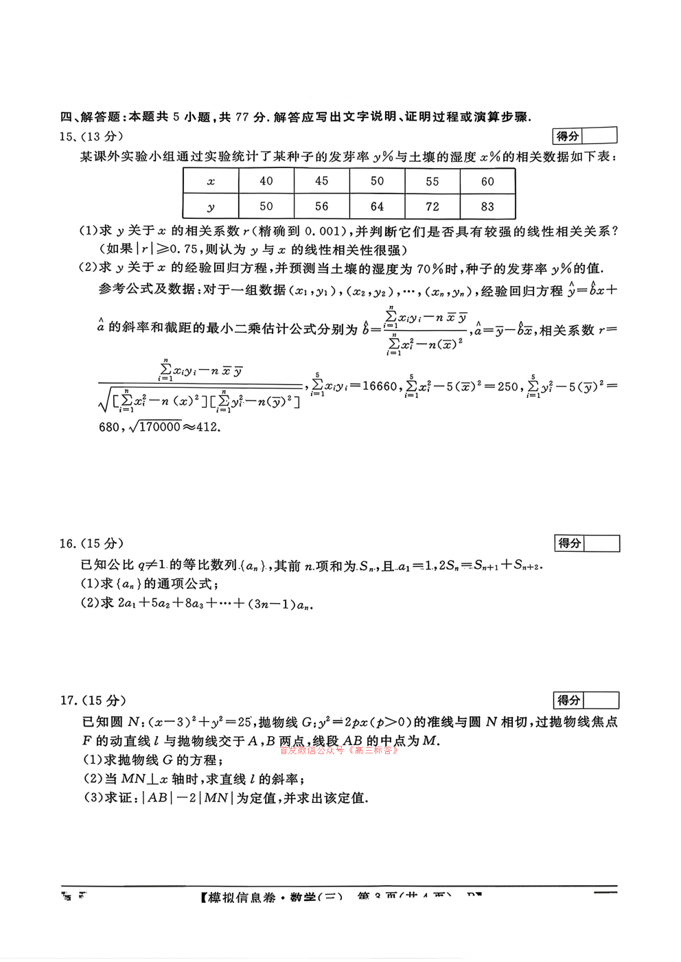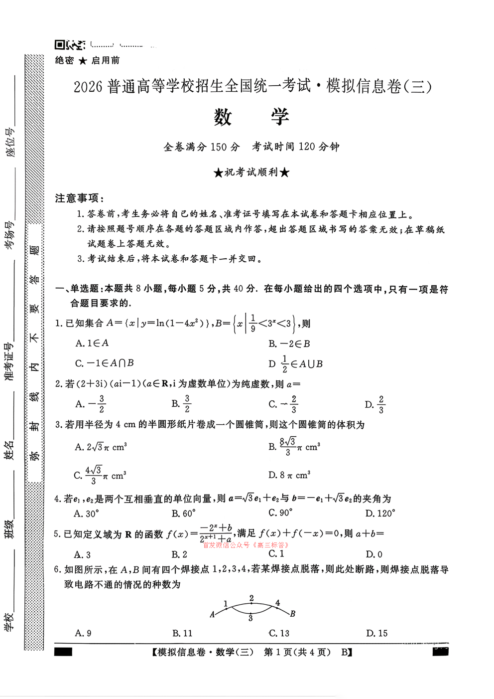 2026普通高等学校招生全国统一考试模拟信息卷三