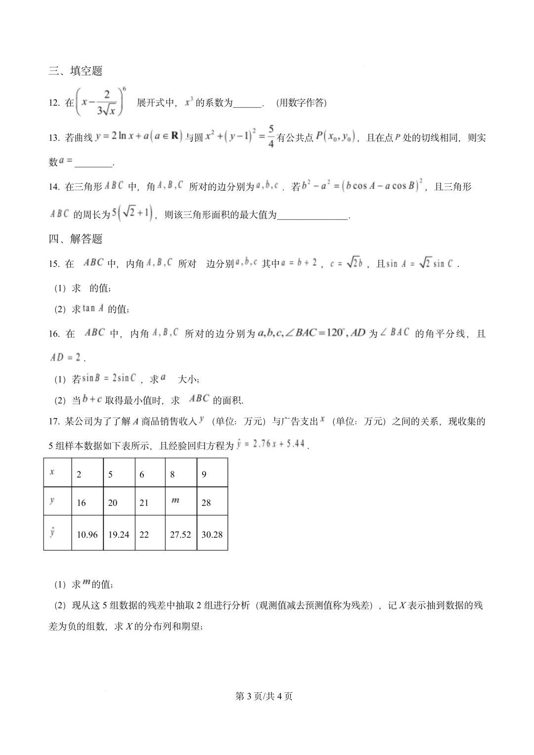 2026普通高等学校招生全国统一考试模拟信息卷三 2026普通高等学校招生全国统一考试模拟信息卷三