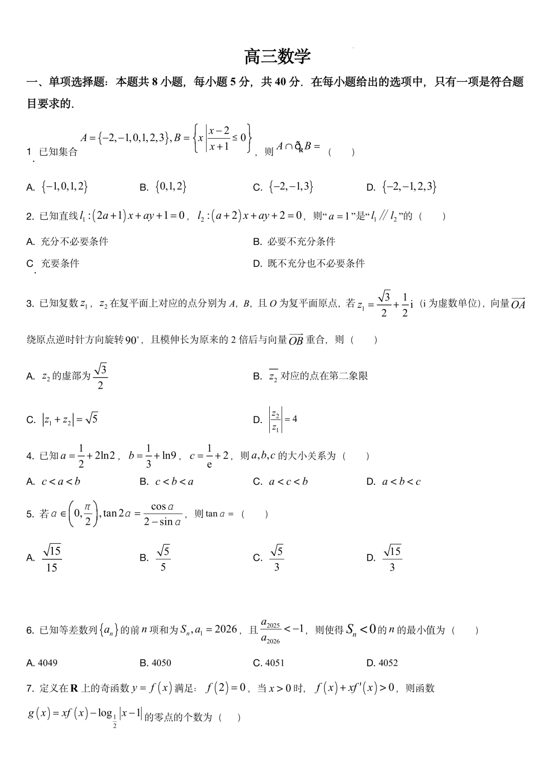 吉林省实验中学2026届高三下学期3月阶段检测 吉林省实验中学2026届高三下学期3月阶段检测