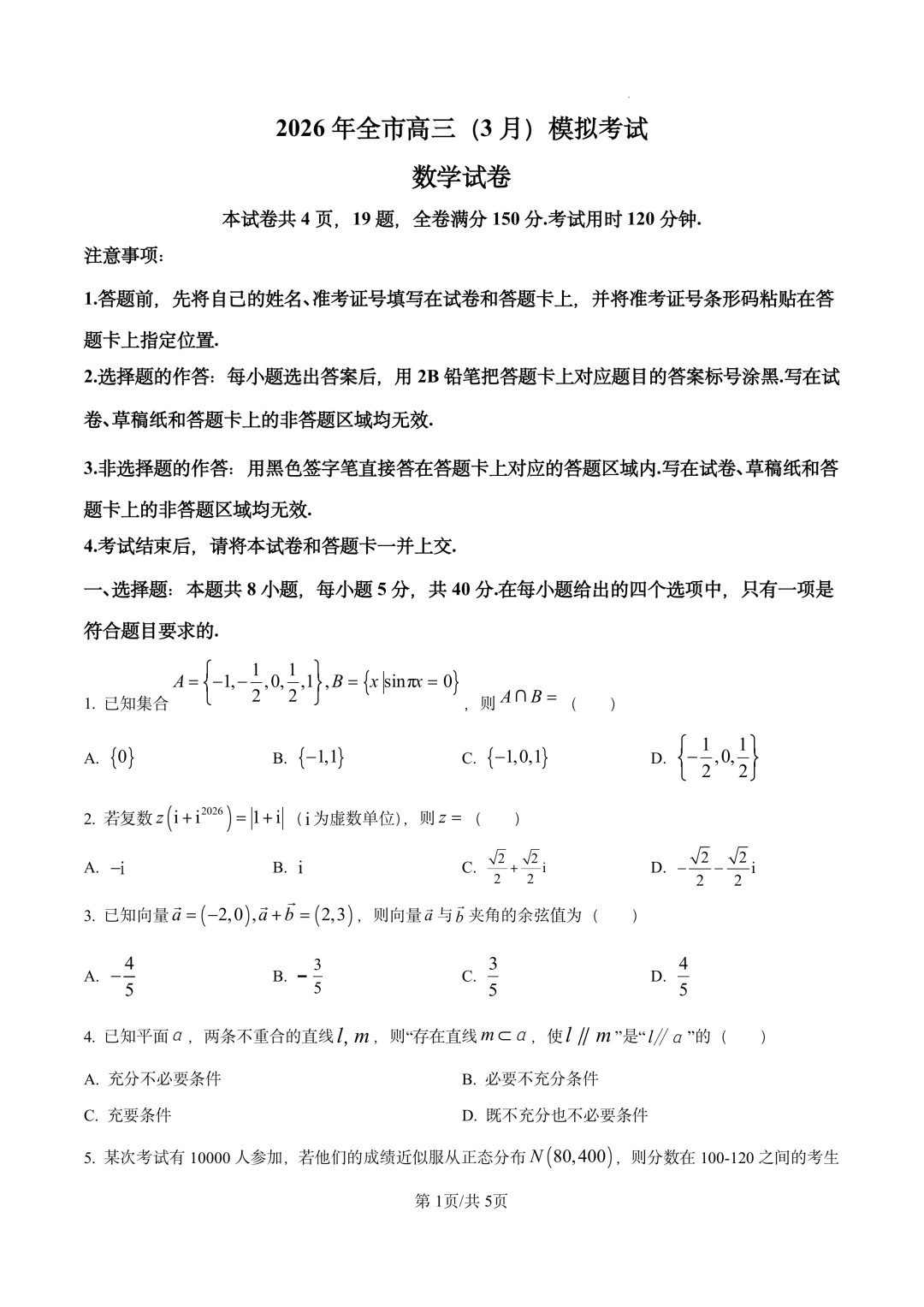 河北省邯郸市2026届高三第一次模拟检测试(邯郸一模) 河北省邯郸市2026届高三第一次模拟检测试(邯郸一模)