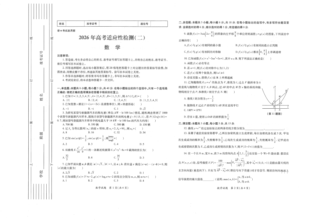 陕西省2026年高考适应性检测(二)