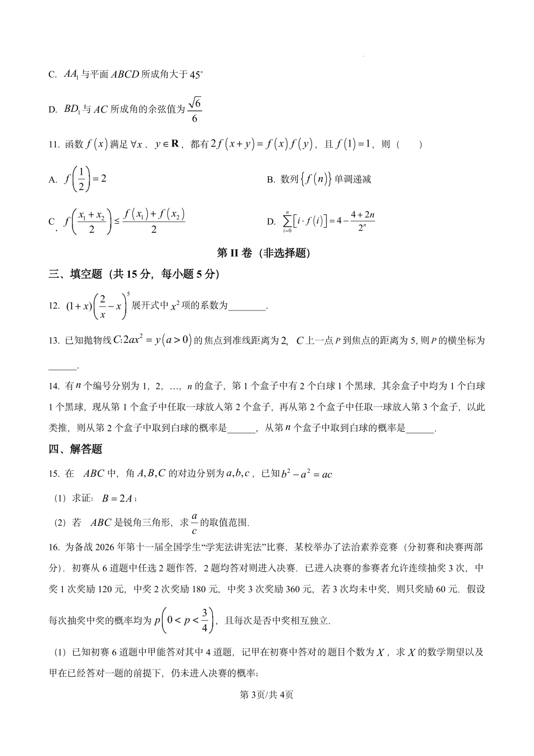 辽宁省抚顺市2026届高三3月模拟考试(抚顺一模) 辽宁省抚顺市2026届高三3月模拟考试(抚顺一模)