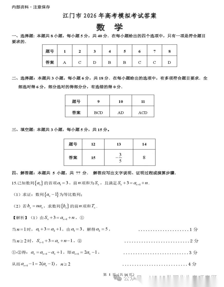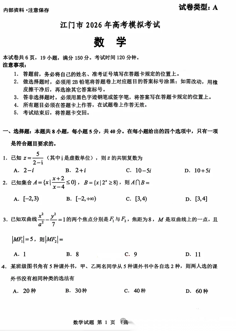 【补齐重发】【广东卷】广东省江门市2026年3月高三年级高考模拟考试(江门一模)(3.18-3.20) 理科试题卷(缺生物)+答案