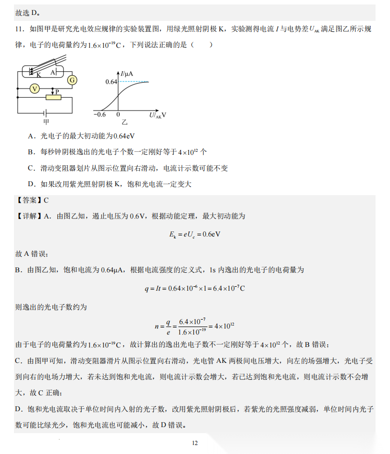 【高考物理】【光电效应】高考物理光电效应七大题型总结---考点归纳+知识归纳+技巧归纳+考点题型归纳(51页完整版)