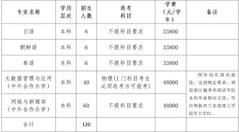 | 本科批 | 历史 | 不限 | 英语 | 4 | (外语语种英语;办学地点稽山校区) |