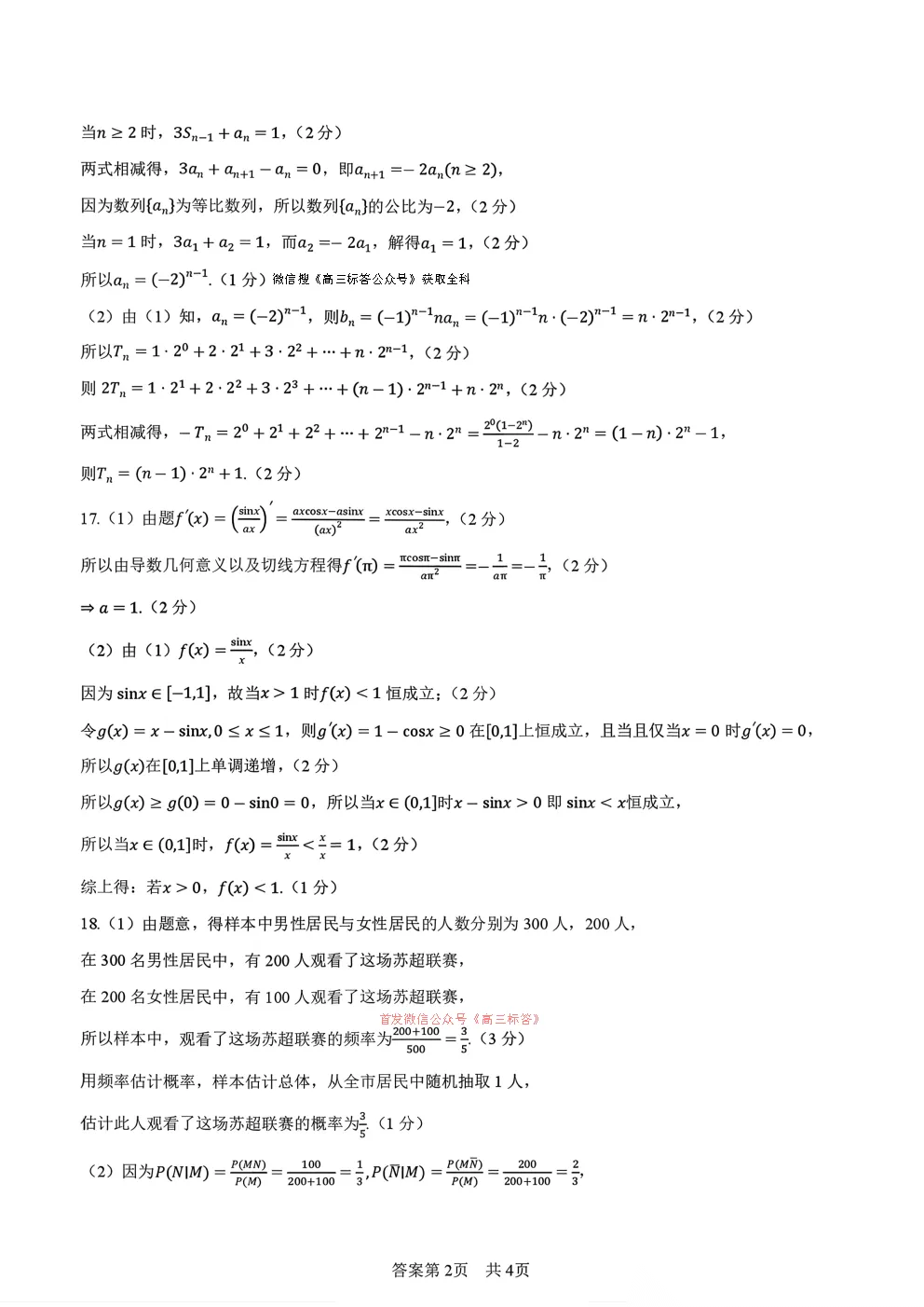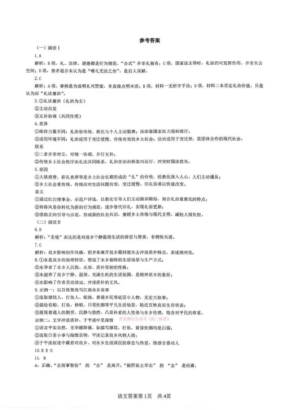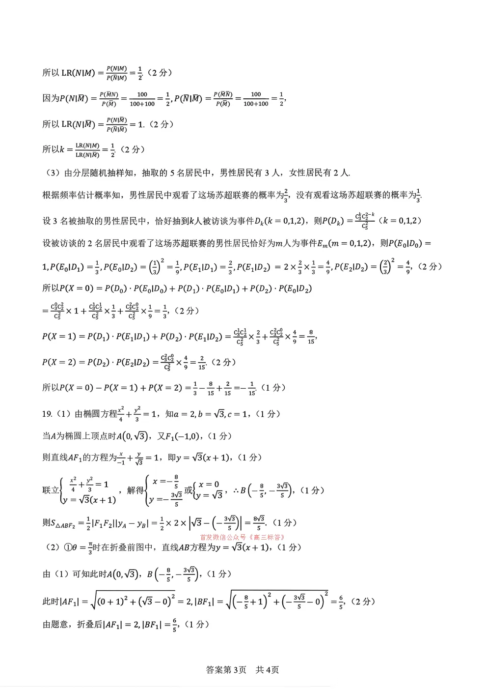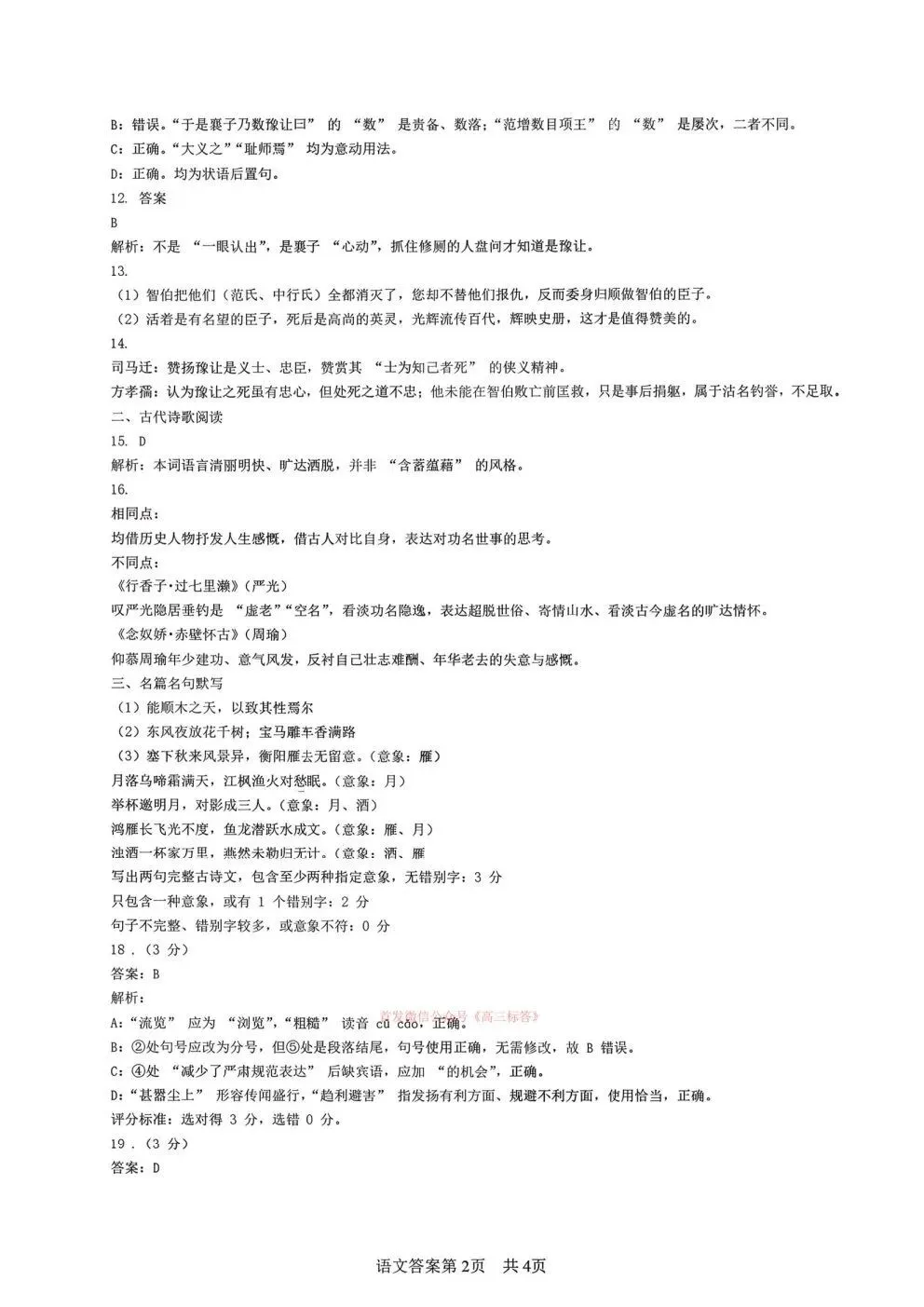 2026届高三3月份质量检测答案 2026届高三3月份质量检测答案