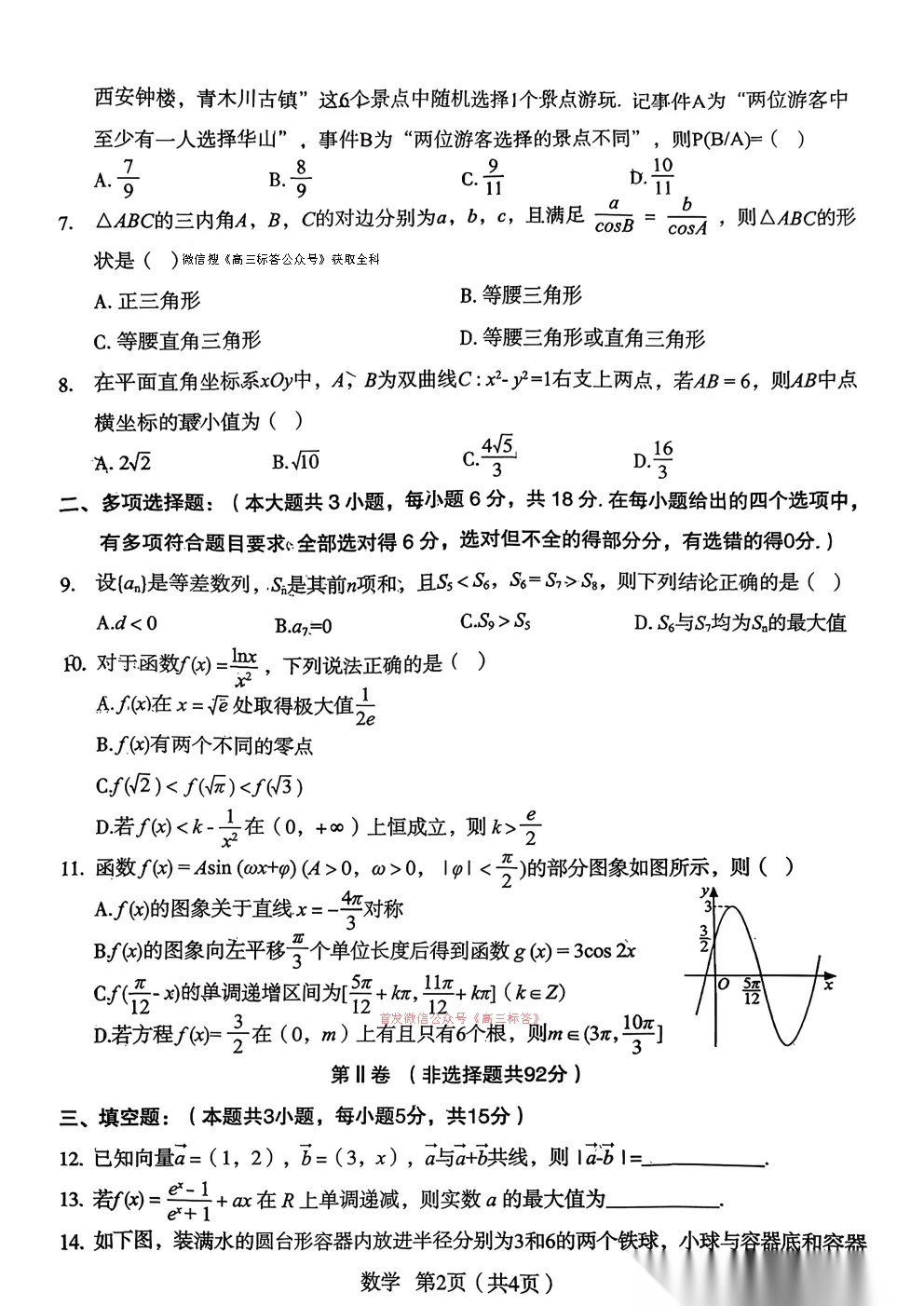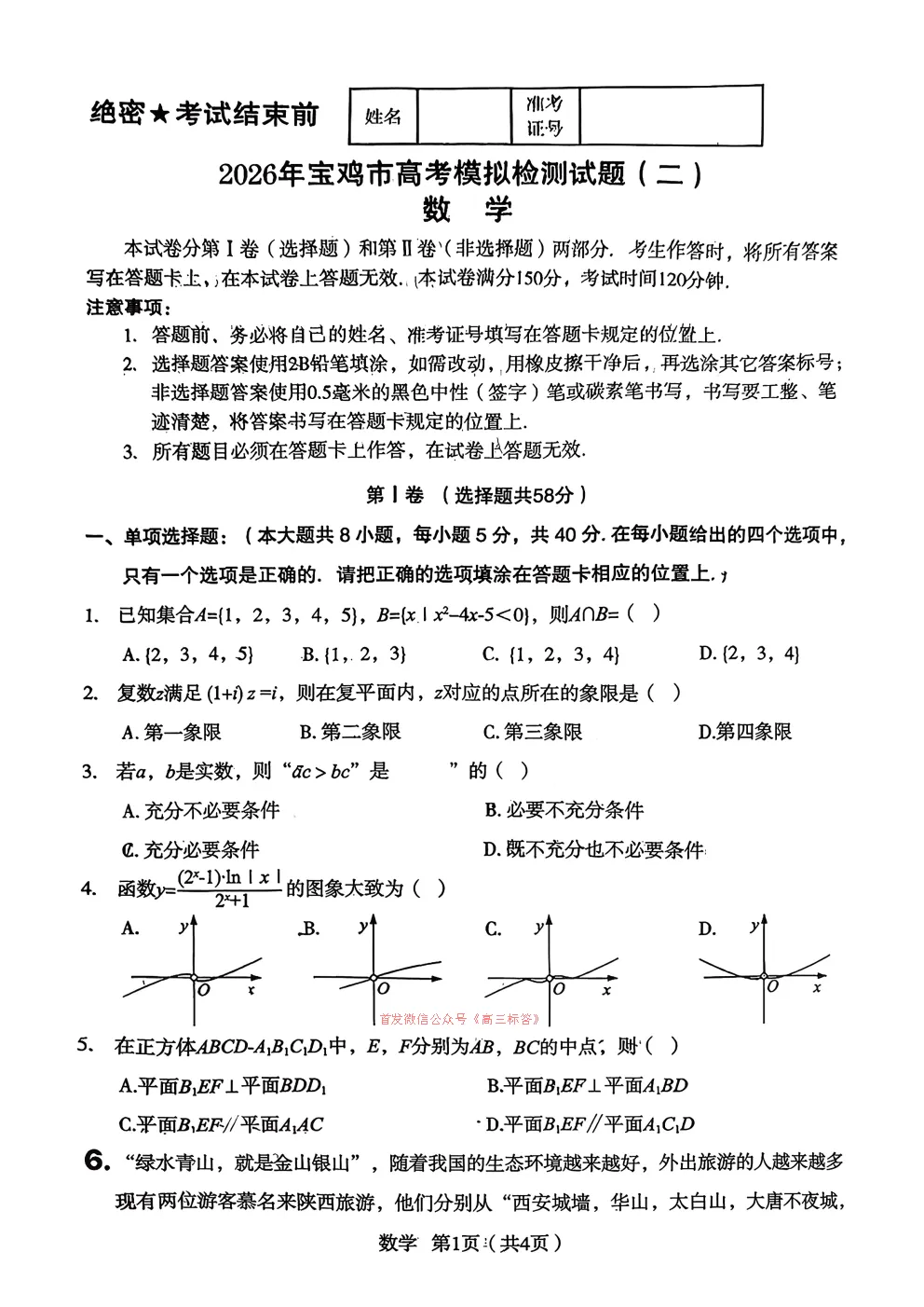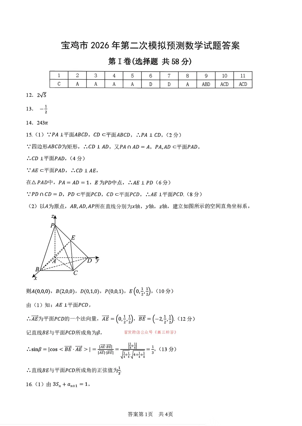 【宝鸡二模】2026年宝鸡市高考模拟检测试题二答案