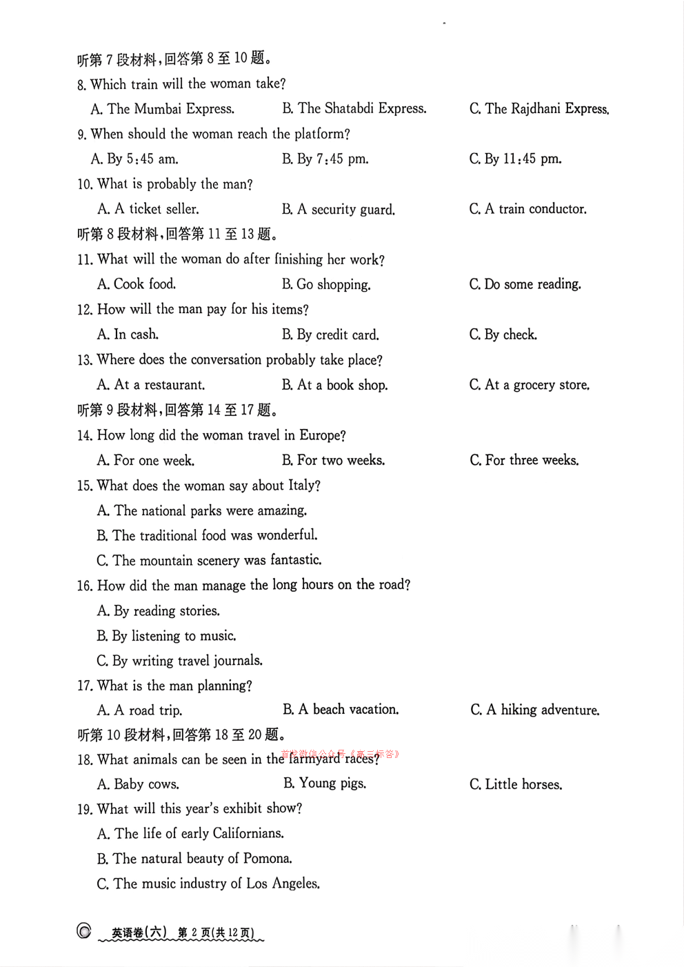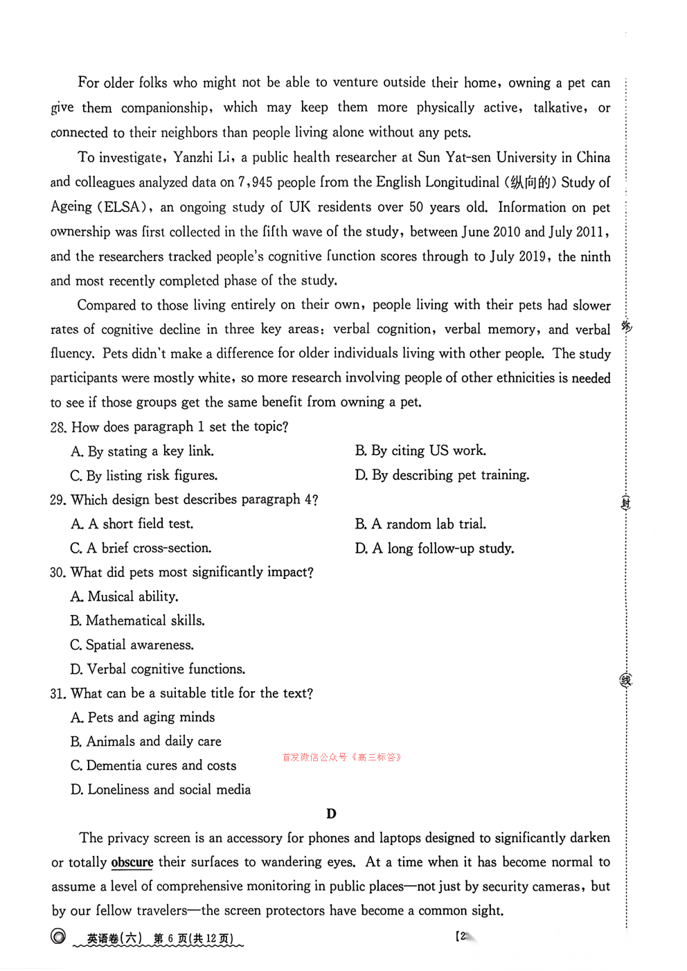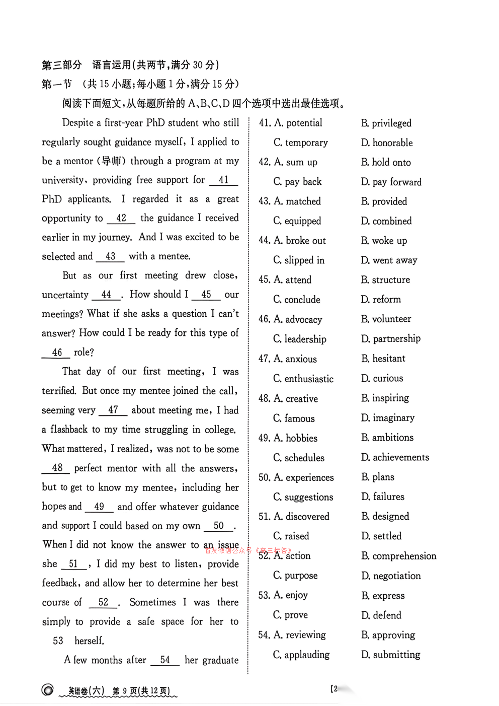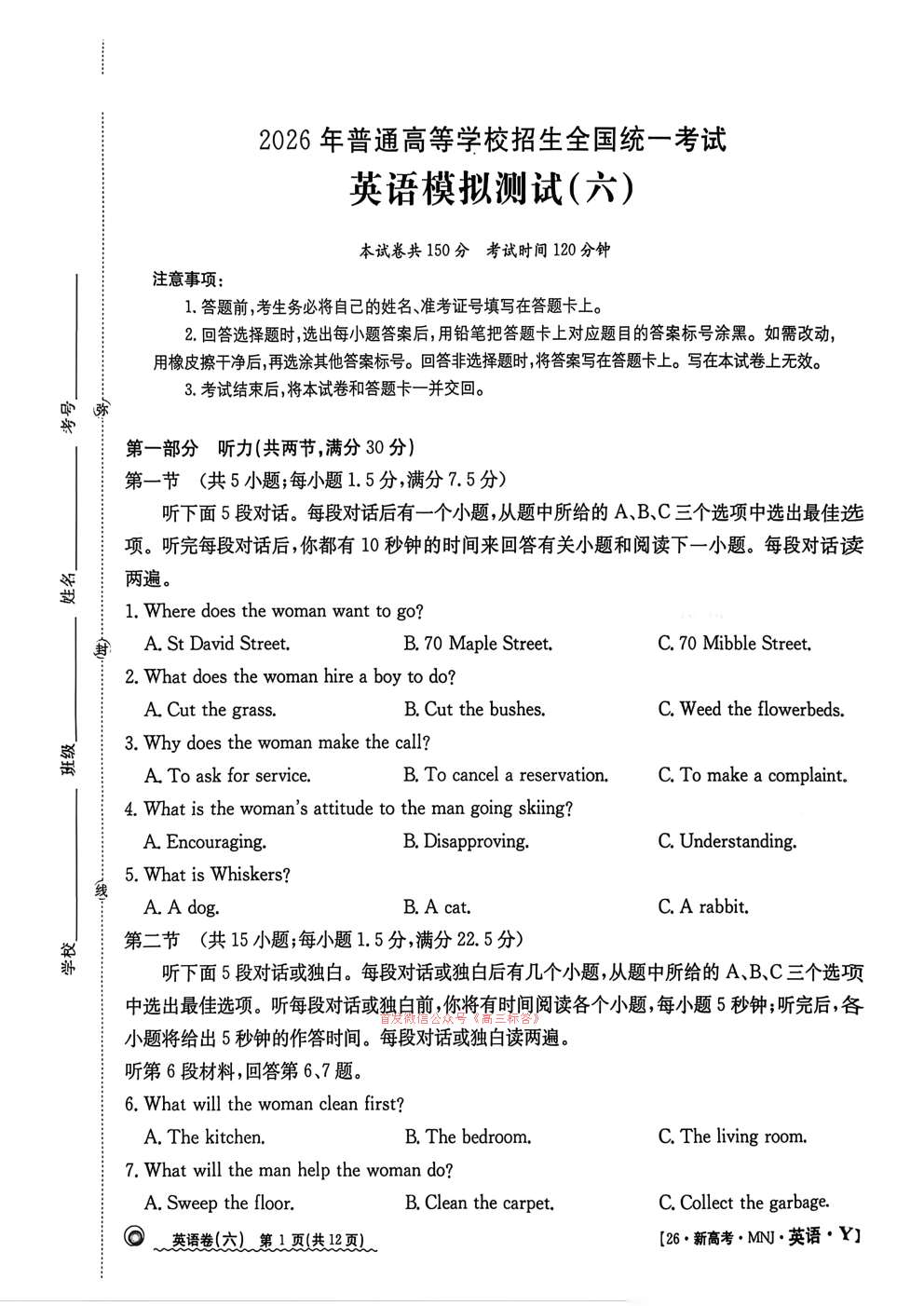2026全国100所名校高考模拟示范卷六