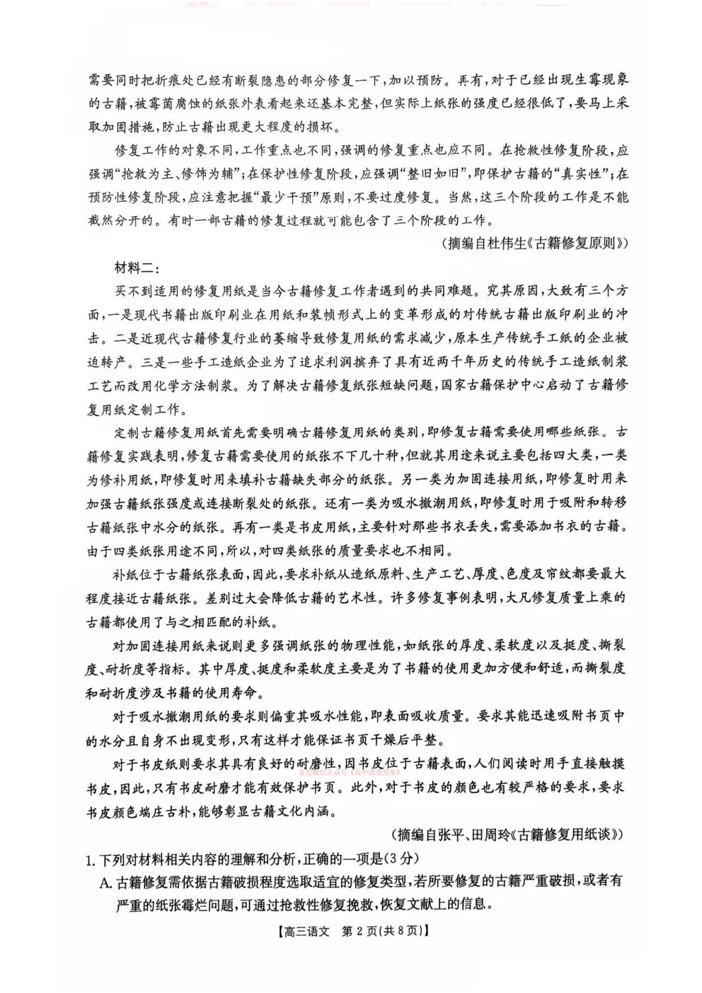 2026届高三3月份质量检测答案 2026届高三3月份质量检测答案
