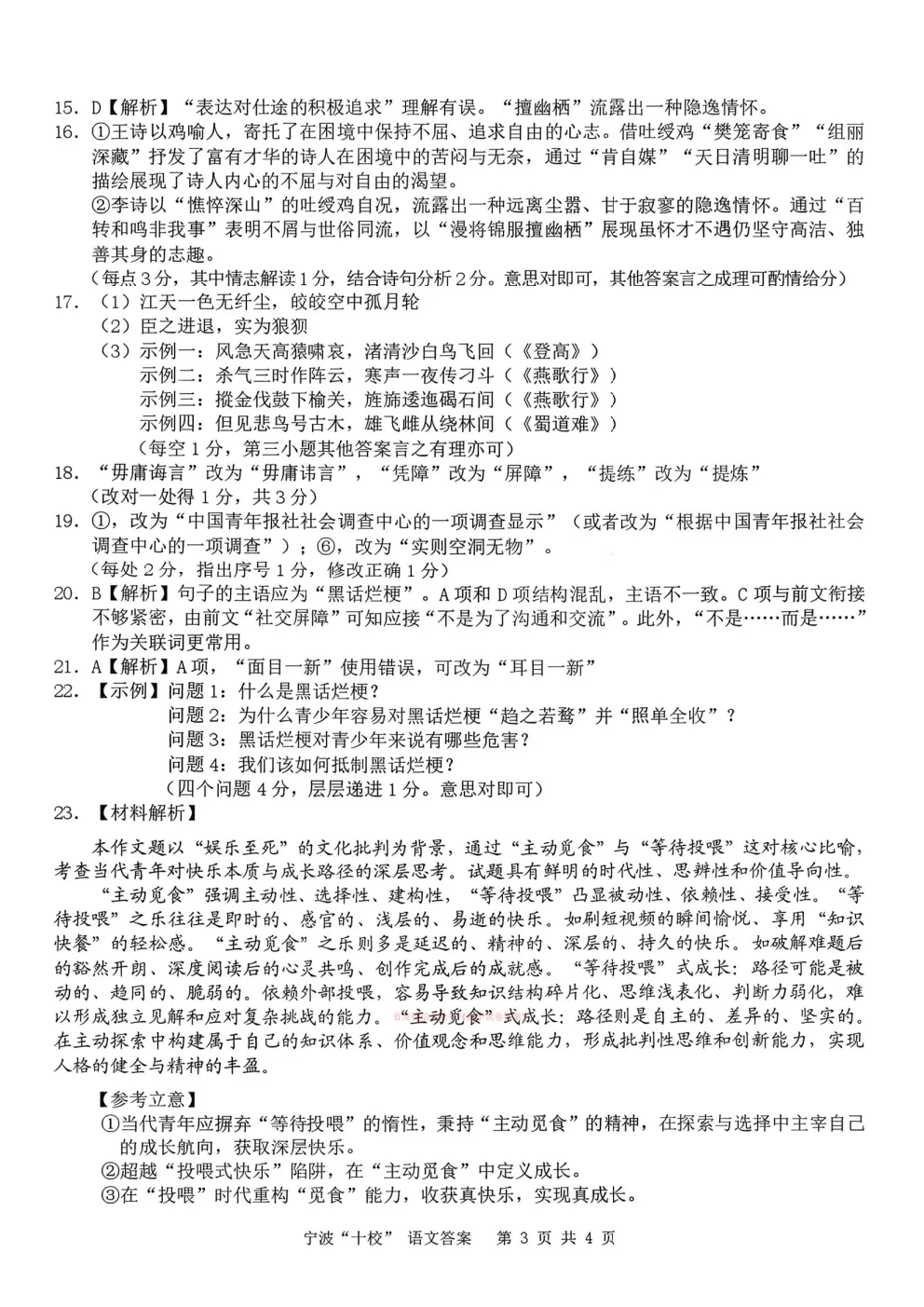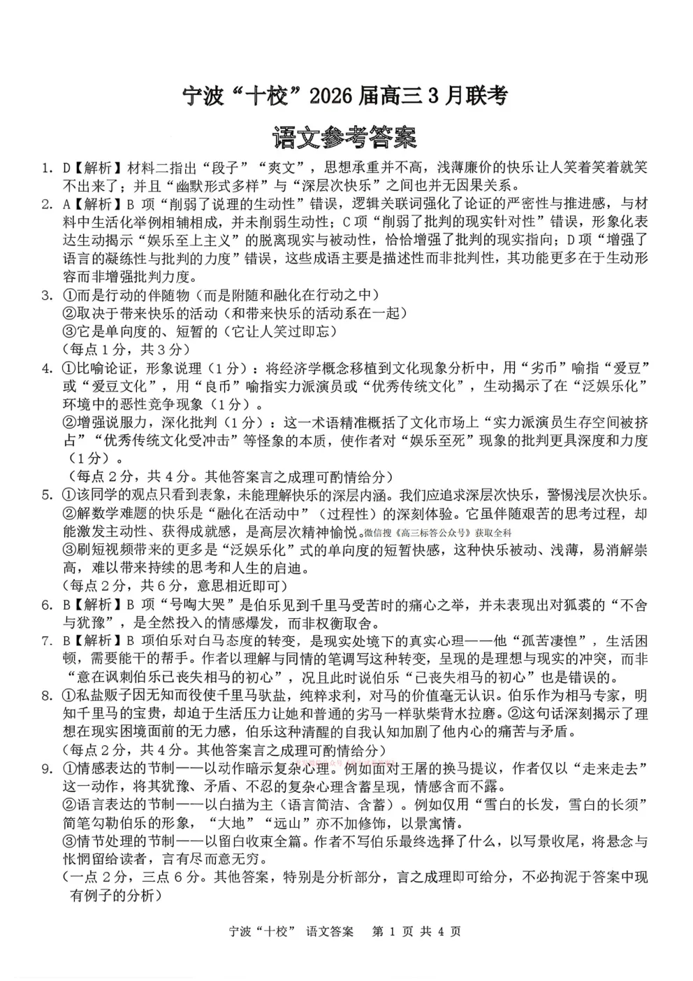 2026届高三3月份质量检测答案 2026届高三3月份质量检测答案