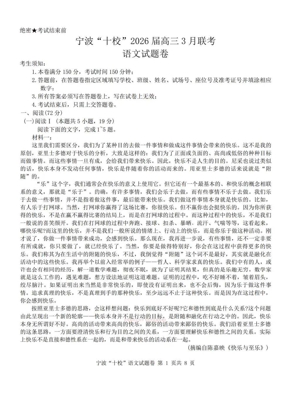 【全科】湖北省恩施州2026届高三第二次质量监测考试 【全科】湖北省恩施州2026届高三第二次质量监测考试