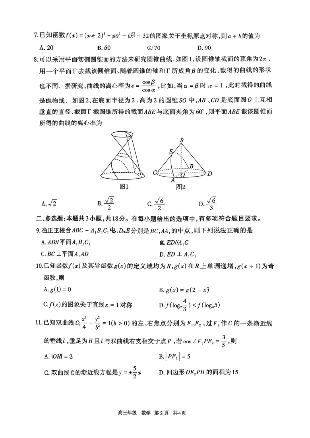 2026届高三3月份质量检测答案 2026届高三3月份质量检测答案