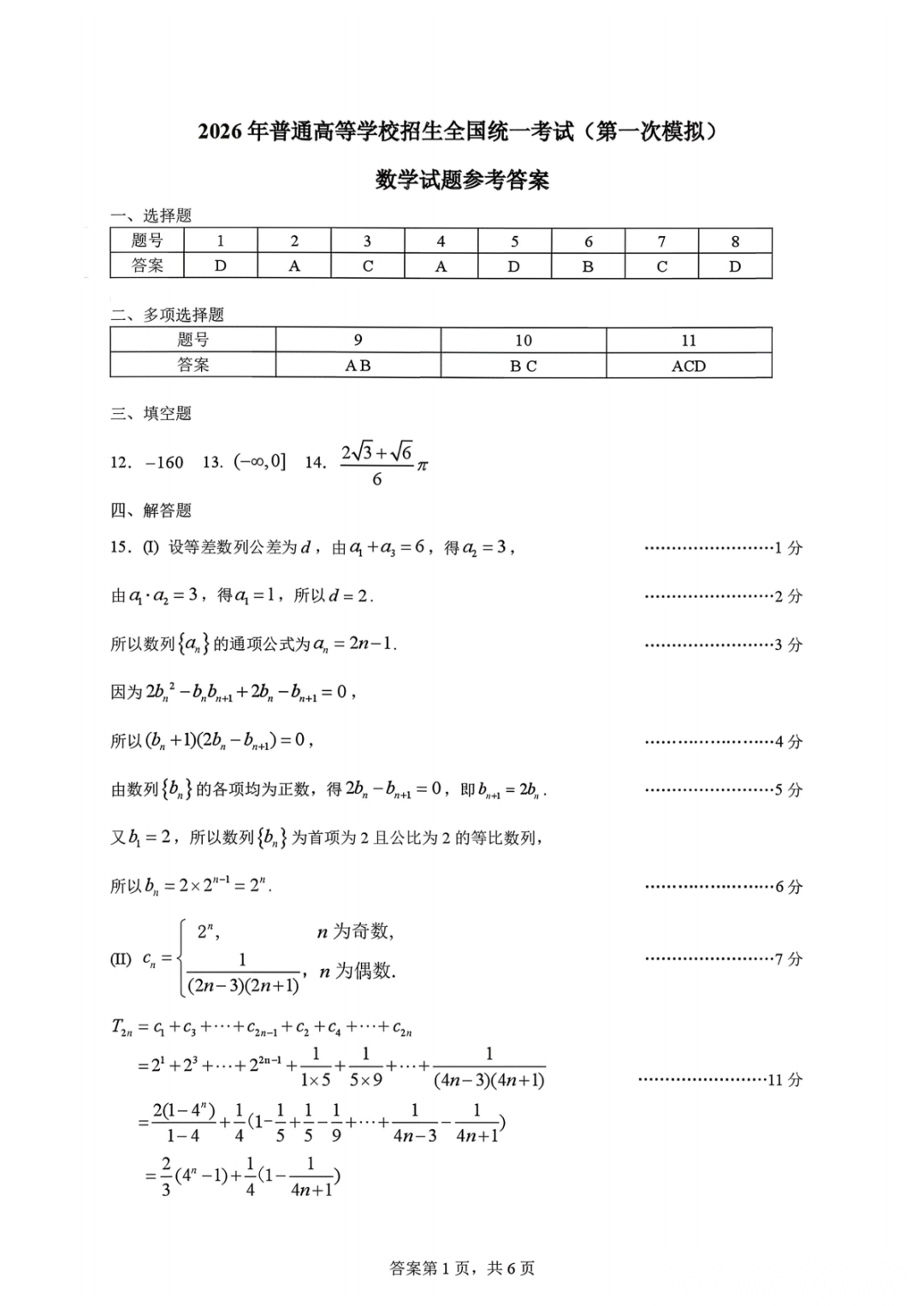 2026届高三3月份质量检测答案 2026届高三3月份质量检测答案