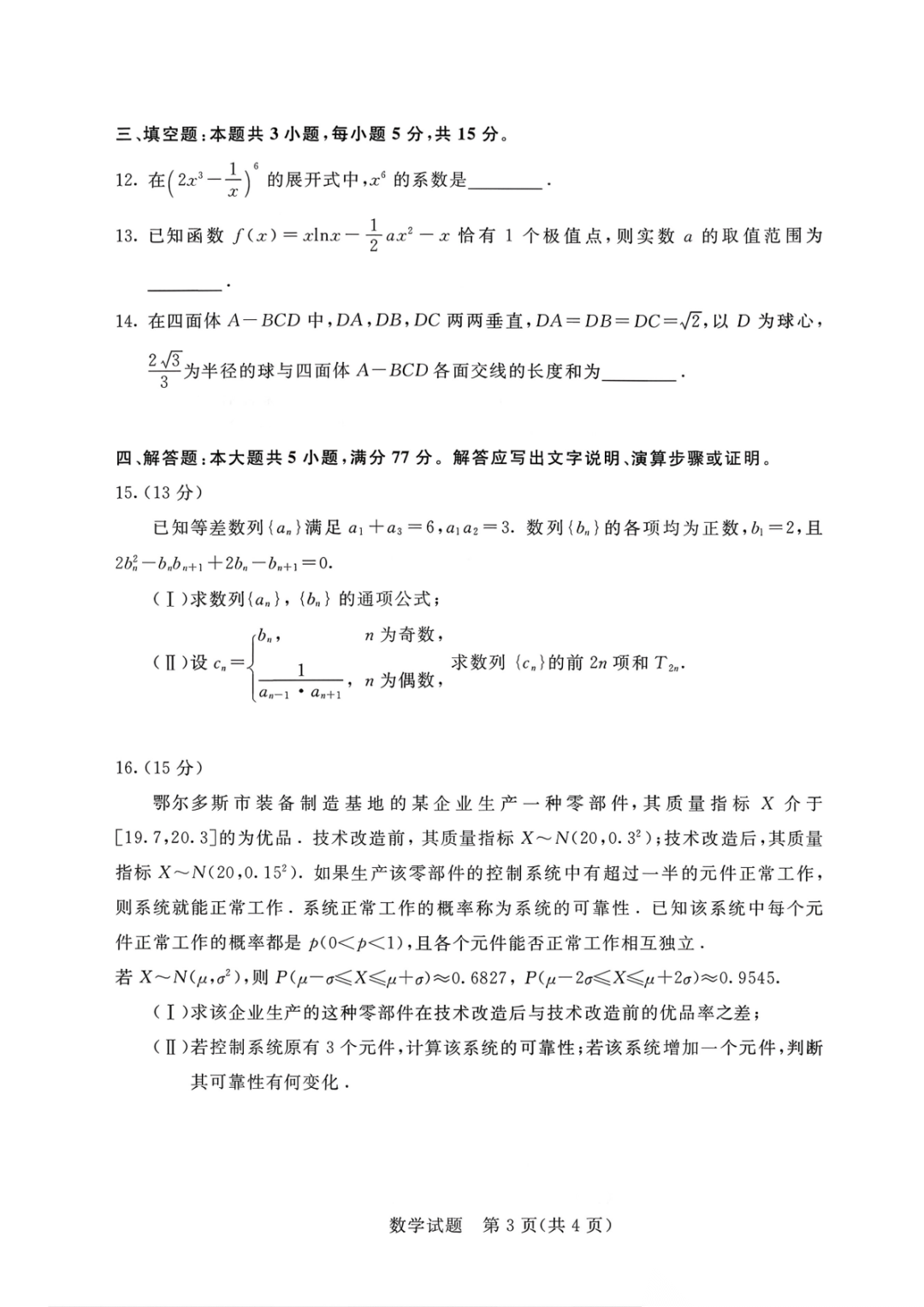 【全科】内蒙古自治区鄂尔多斯市2026届高三下学期第一次模拟考试