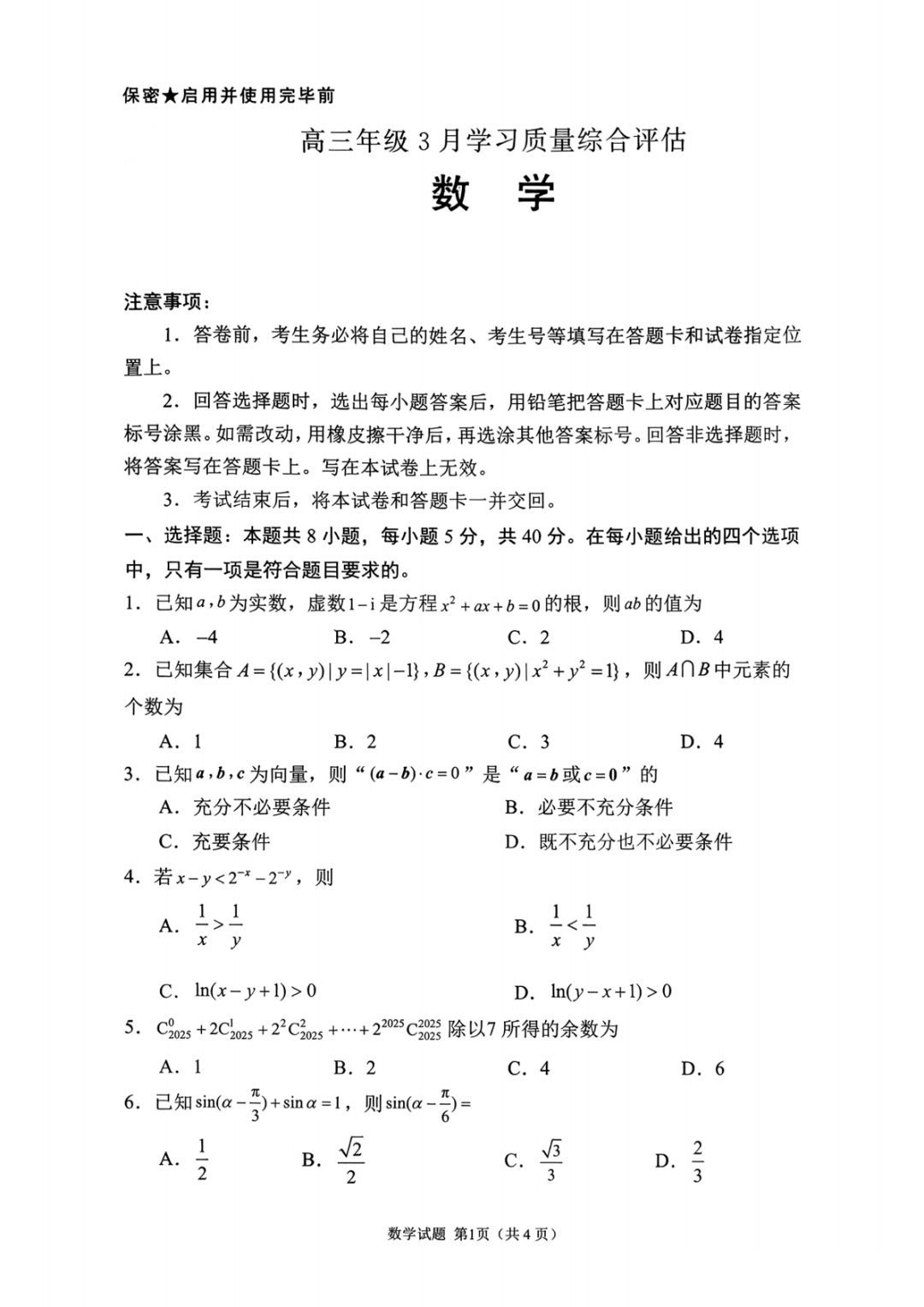 【呼和哈特一模全科】内蒙古自治区呼和浩特市2026年高三年级第一次模拟考试 【呼和哈特一模全科】内蒙古自治区呼和浩特市2026年高三年级第一次模拟考试
