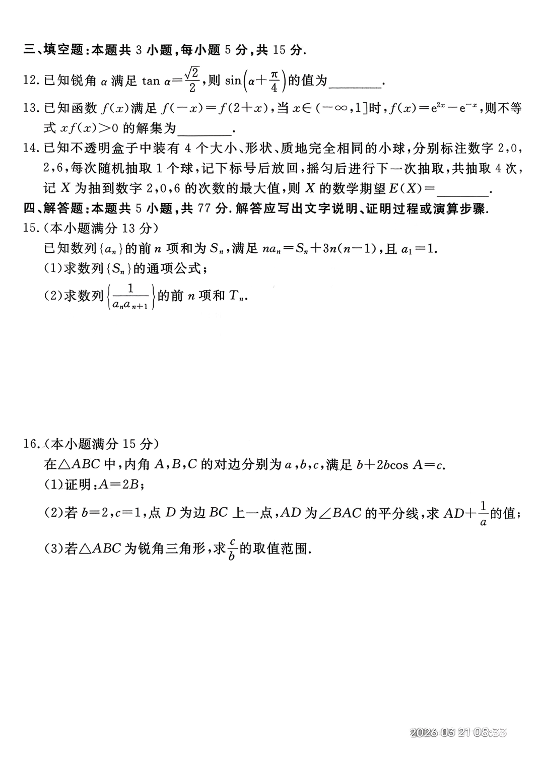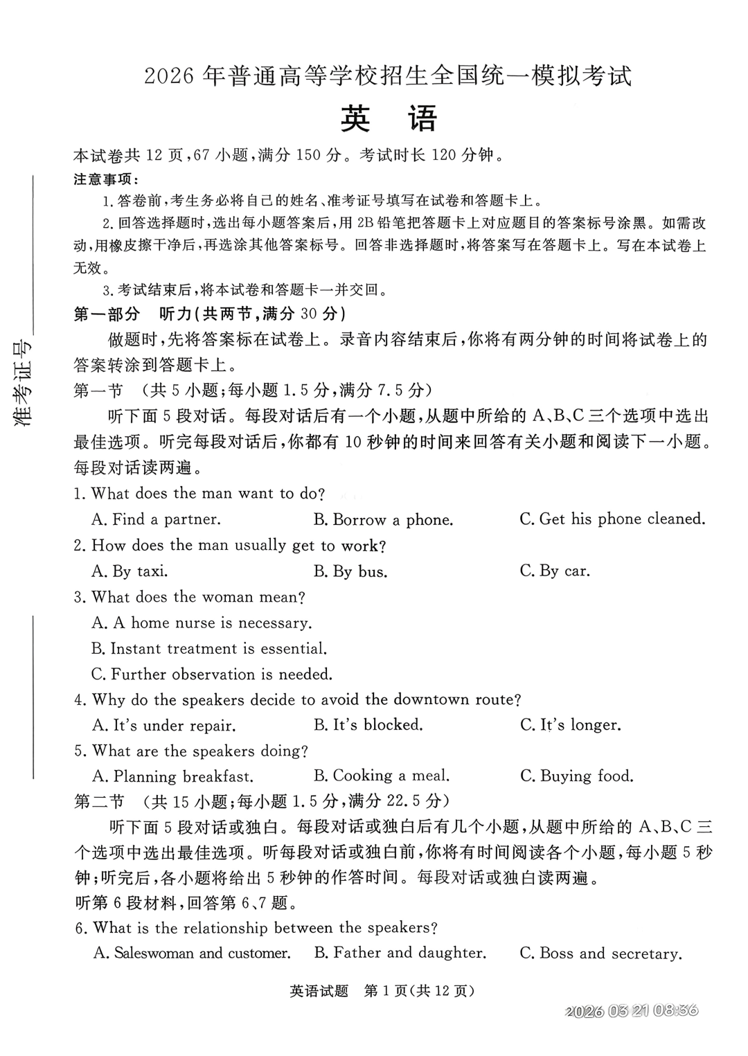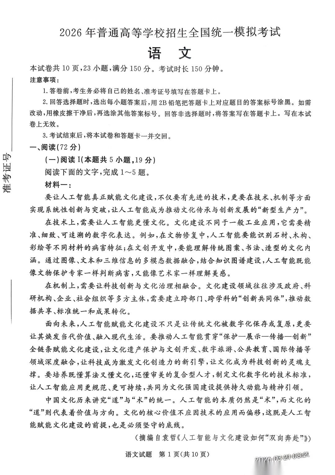 【河北卷】河北省张家口市2026年普通高等学校招生全国统一模拟考试(张家口一模)(3.17-3.18) 全科试题卷+答案