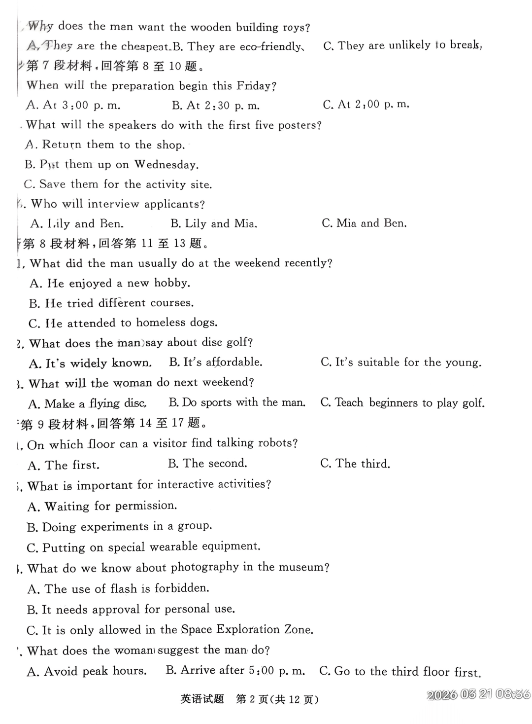 【山东卷】山东省部分学校(九五协作体联考)2026届高三年级3月学习质量综合评估(3.19-3.20) 全科试题卷+答案 【山东卷】山东省部分学校(九五协作体联考)2026届高三年级3月学习质量综合评估(3.19-3.20) 全科试题...