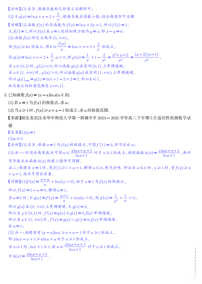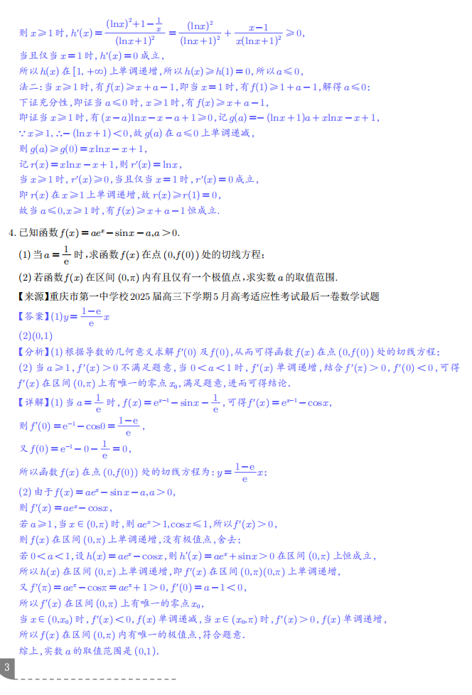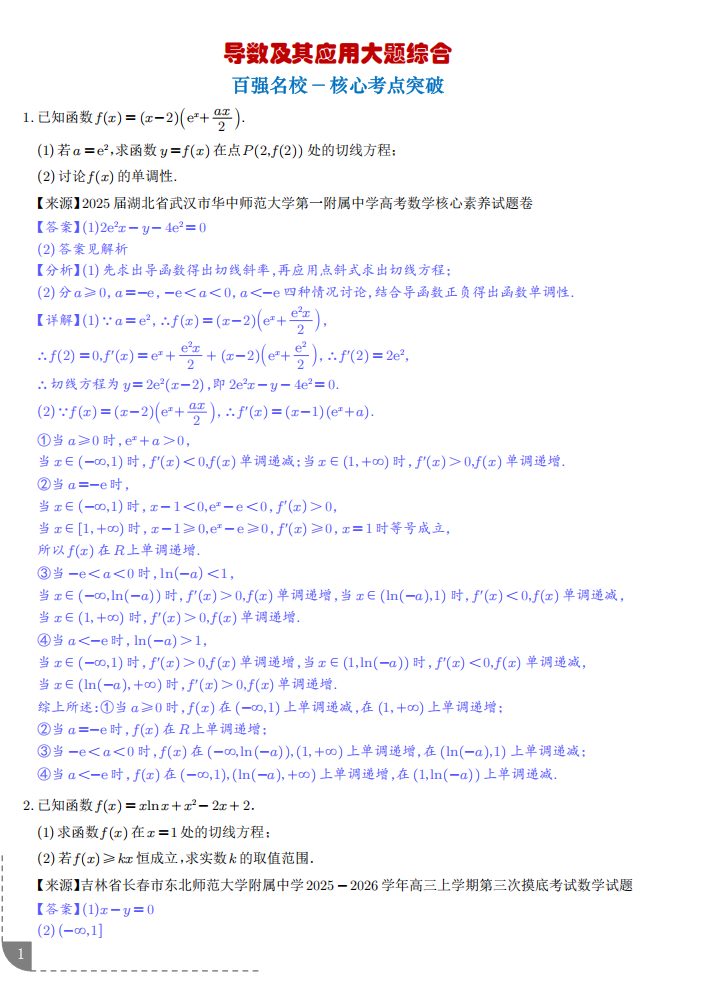 【高考数学】【重难点专练】高考数学考前冲刺重难点专训---导数及其应用大题综合重难点核心考点满分突破专题训练 学生版+解析版(完整版)