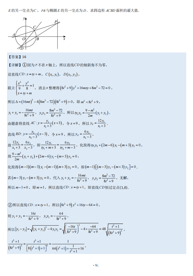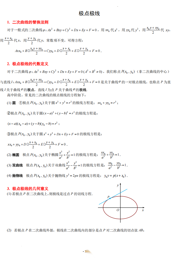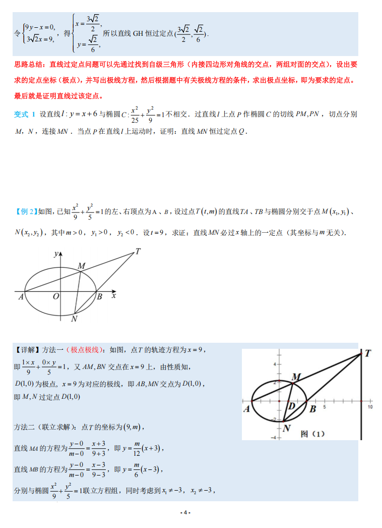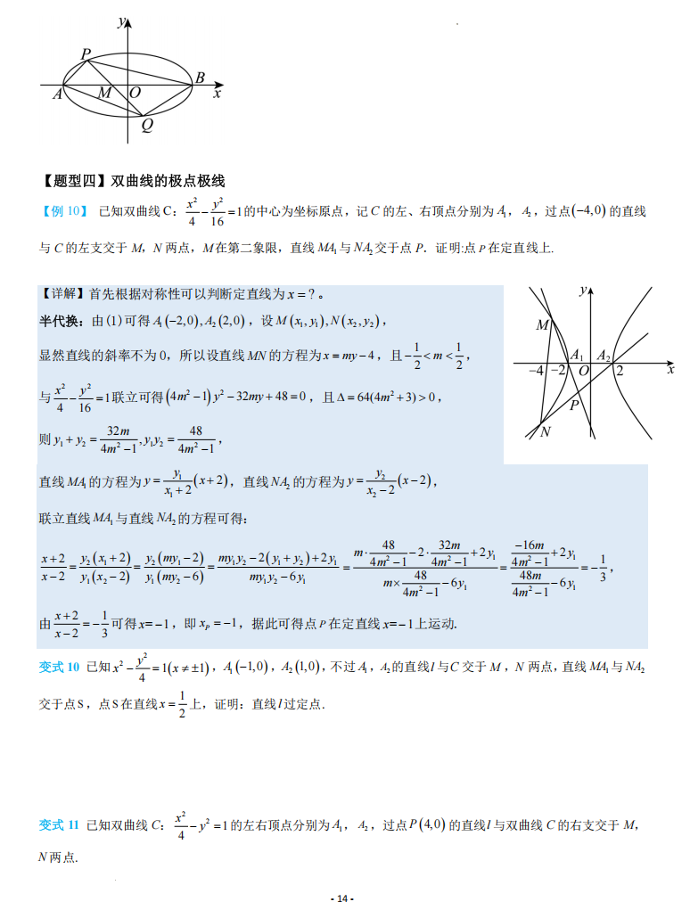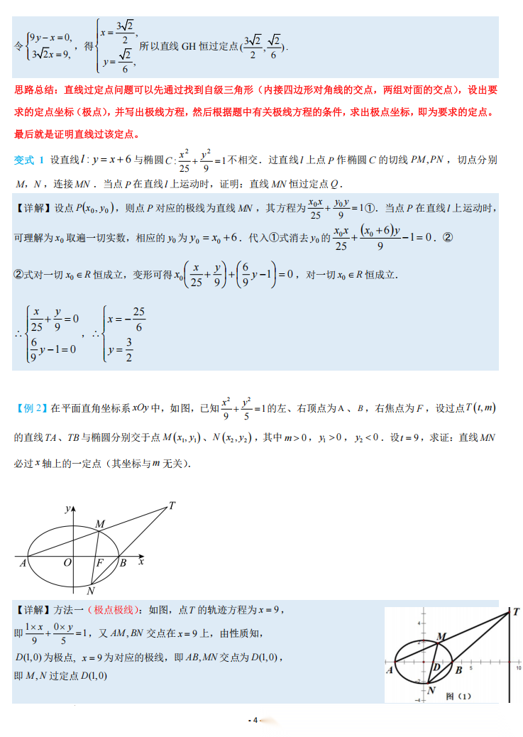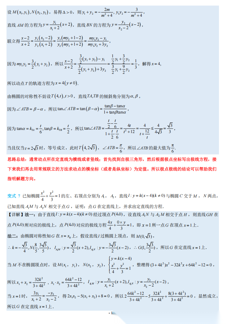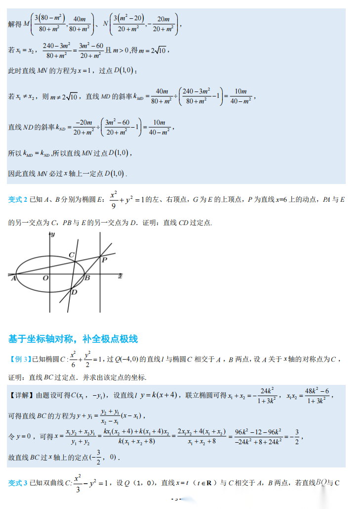 【高考数学】【重难点专练】高考数学考前冲刺重难点专训---极点极线问题专项训练 学生版+解析版(完整版)