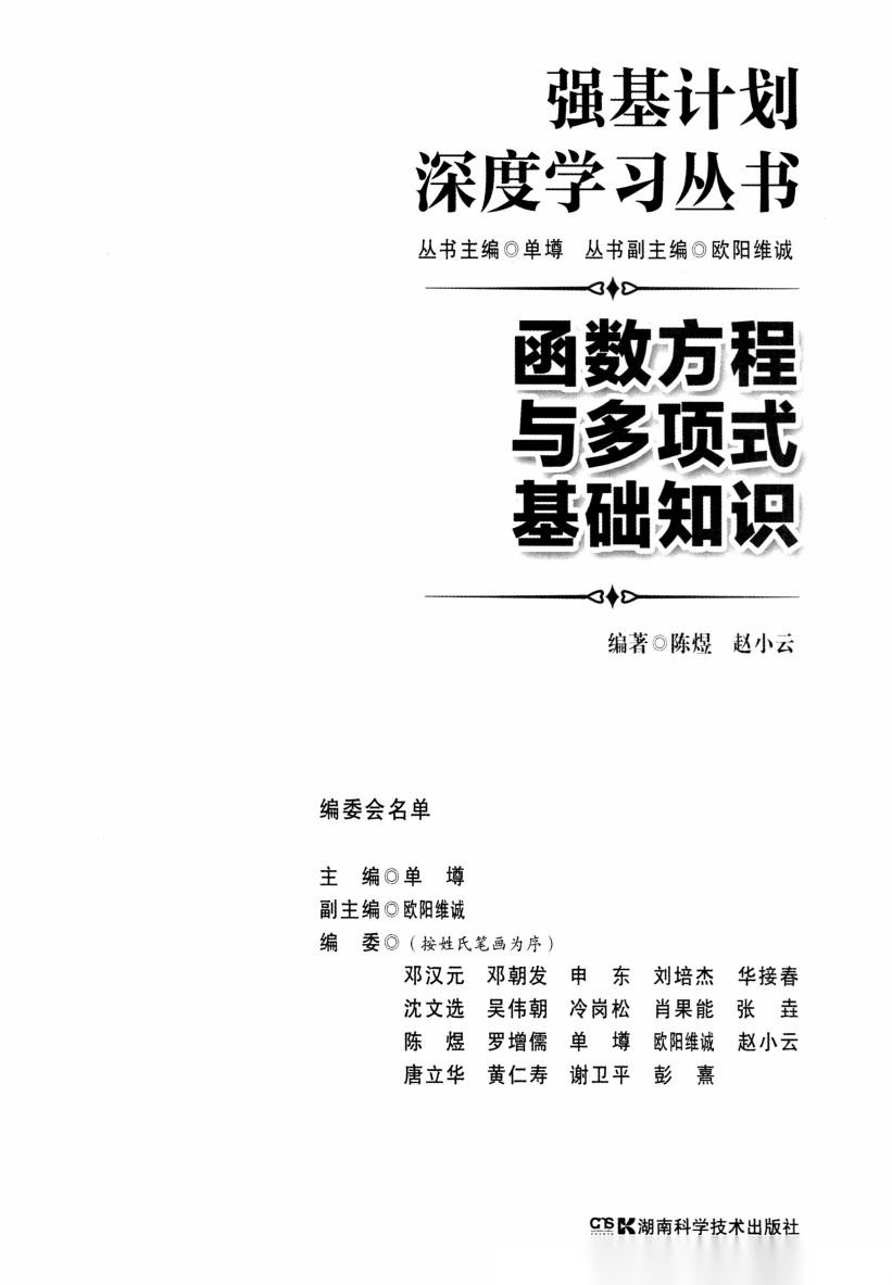 【数学竞赛】【数学强基计划】函数方程与多项式基础知识---数学强基计划深度学习丛书(陈煜老师,赵小云老师编著)(214页完整版)