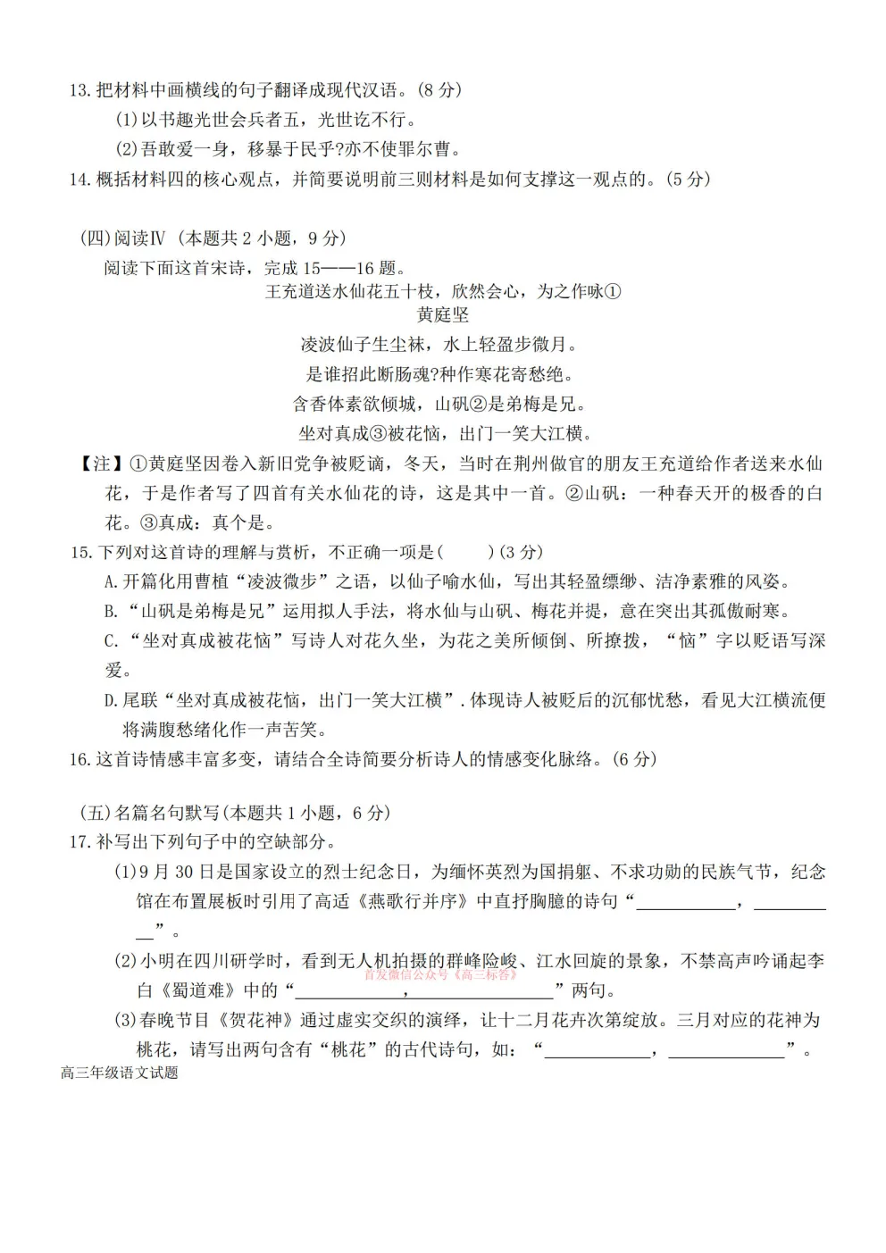 湖北荆州2026届高三3月调研考试 湖北荆州2026届高三3月调研考试