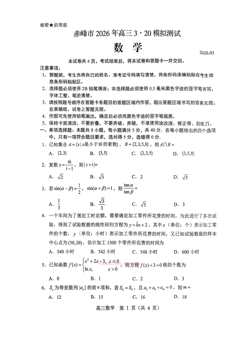 【临汾一模】临汾市2026年高三年级质量监控第一次模拟测试答案 【临汾一模】临汾市2026年高三年级质量监控第一次模拟测试答案