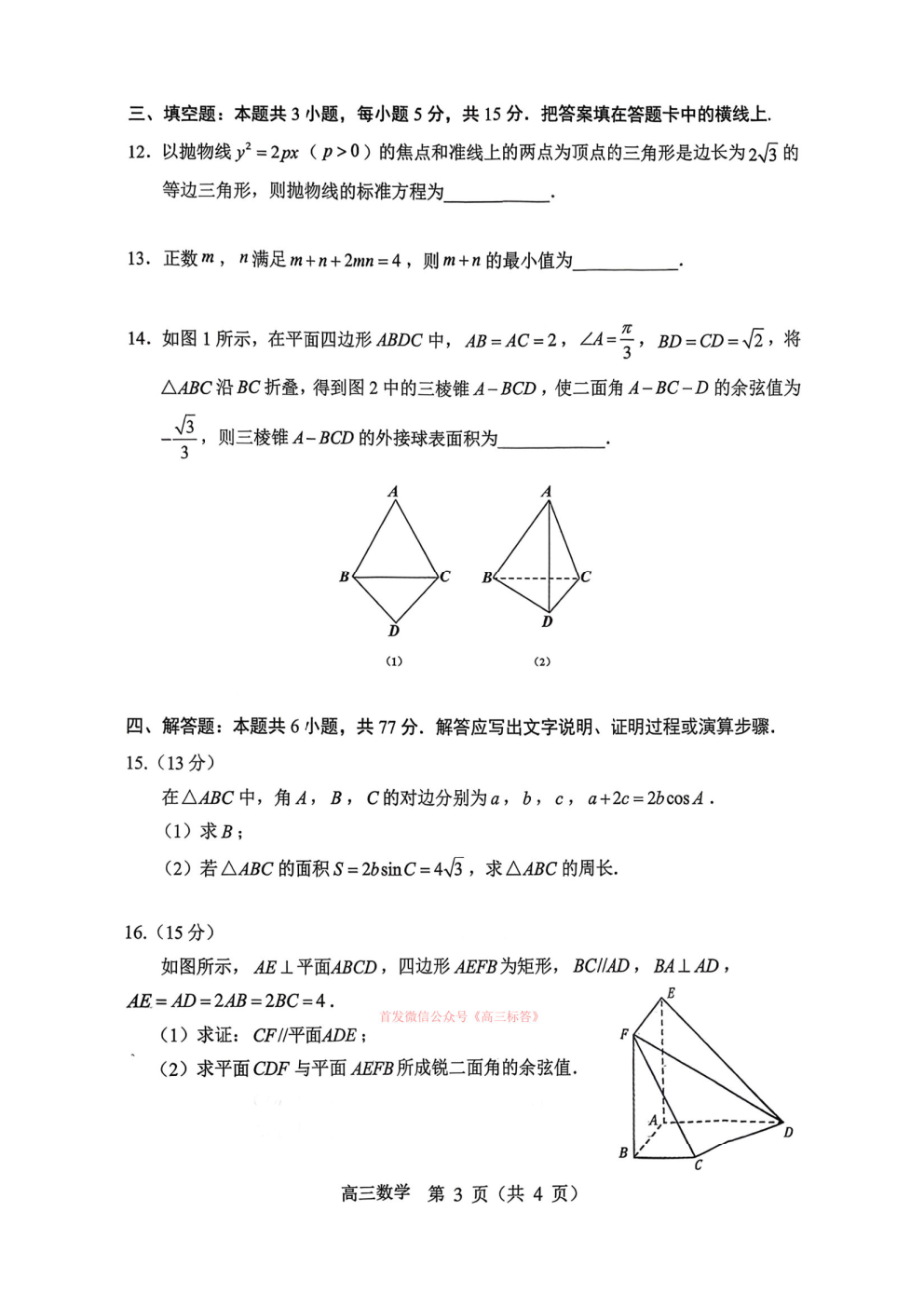 湖北荆州2026届高三3月调研考试 湖北荆州2026届高三3月调研考试