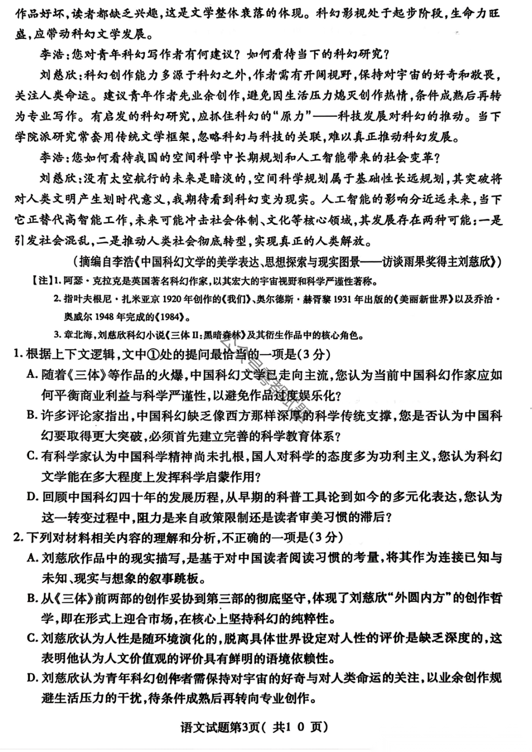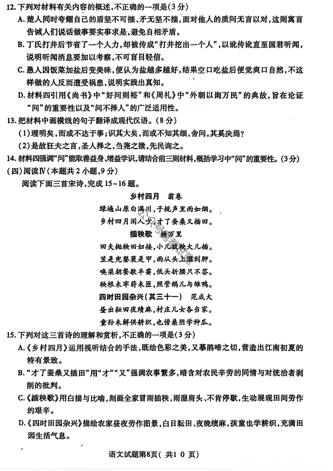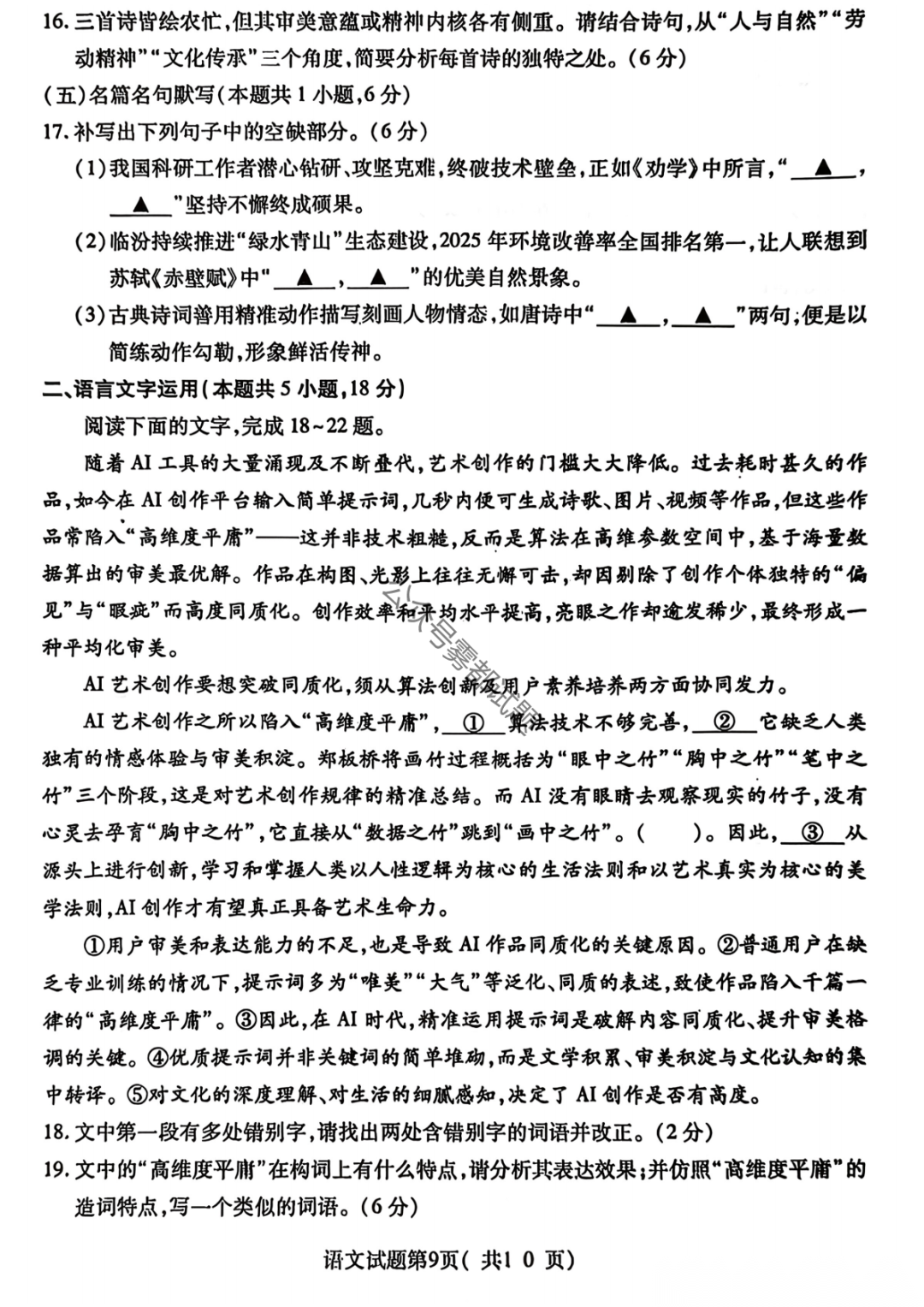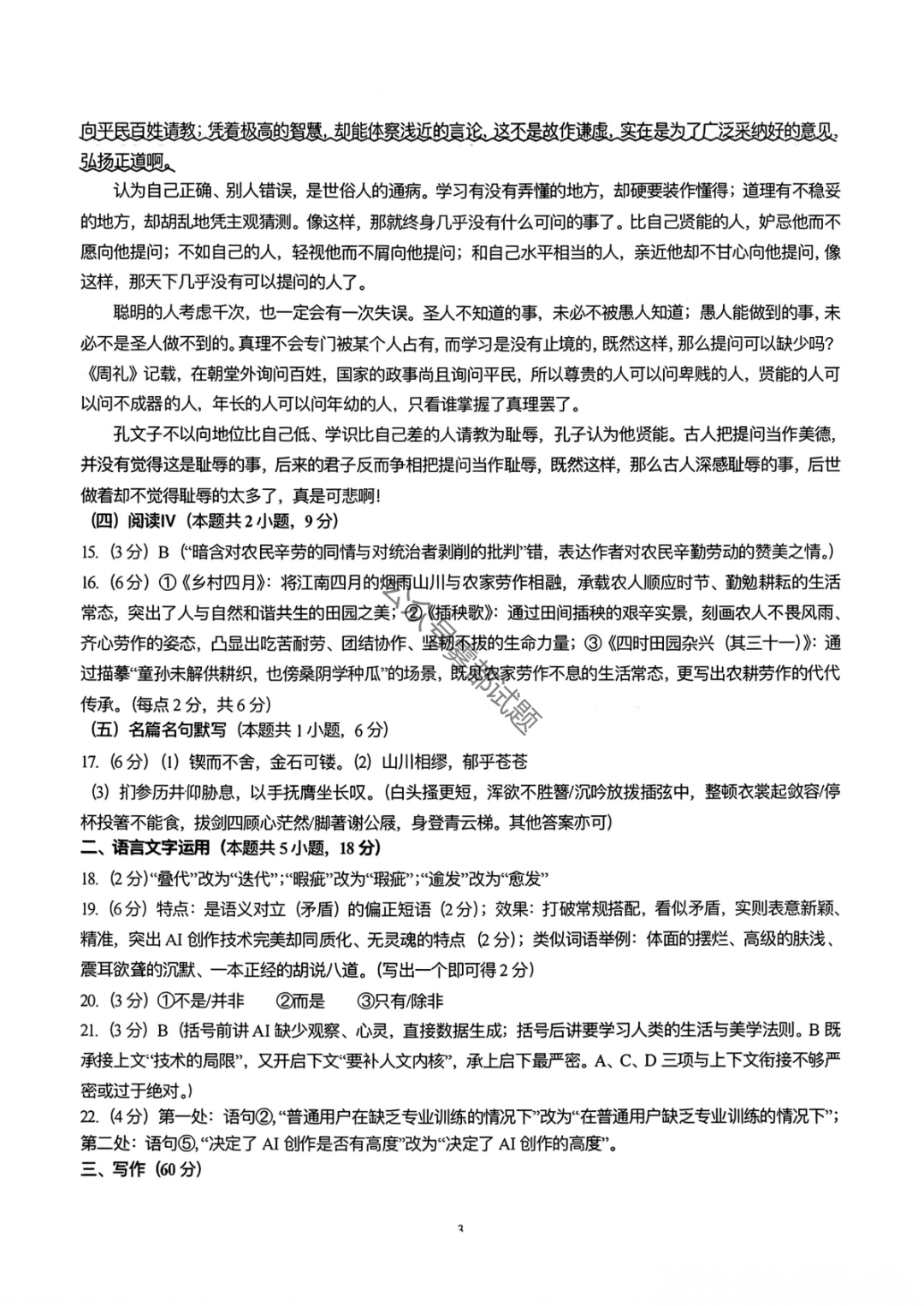 2026成都二诊语文答案 2026成都二诊语文答案