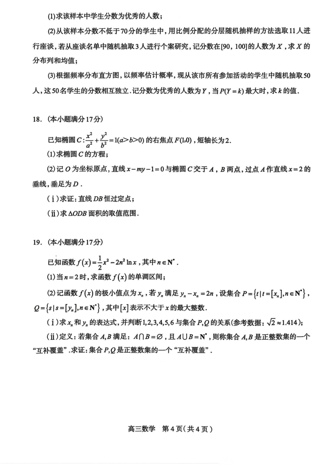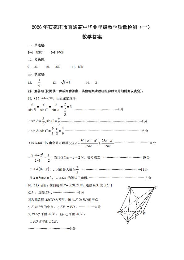河北省石家庄市2026届普通高中学校毕业年级教学质量检测(一)(石家庄一模)数学