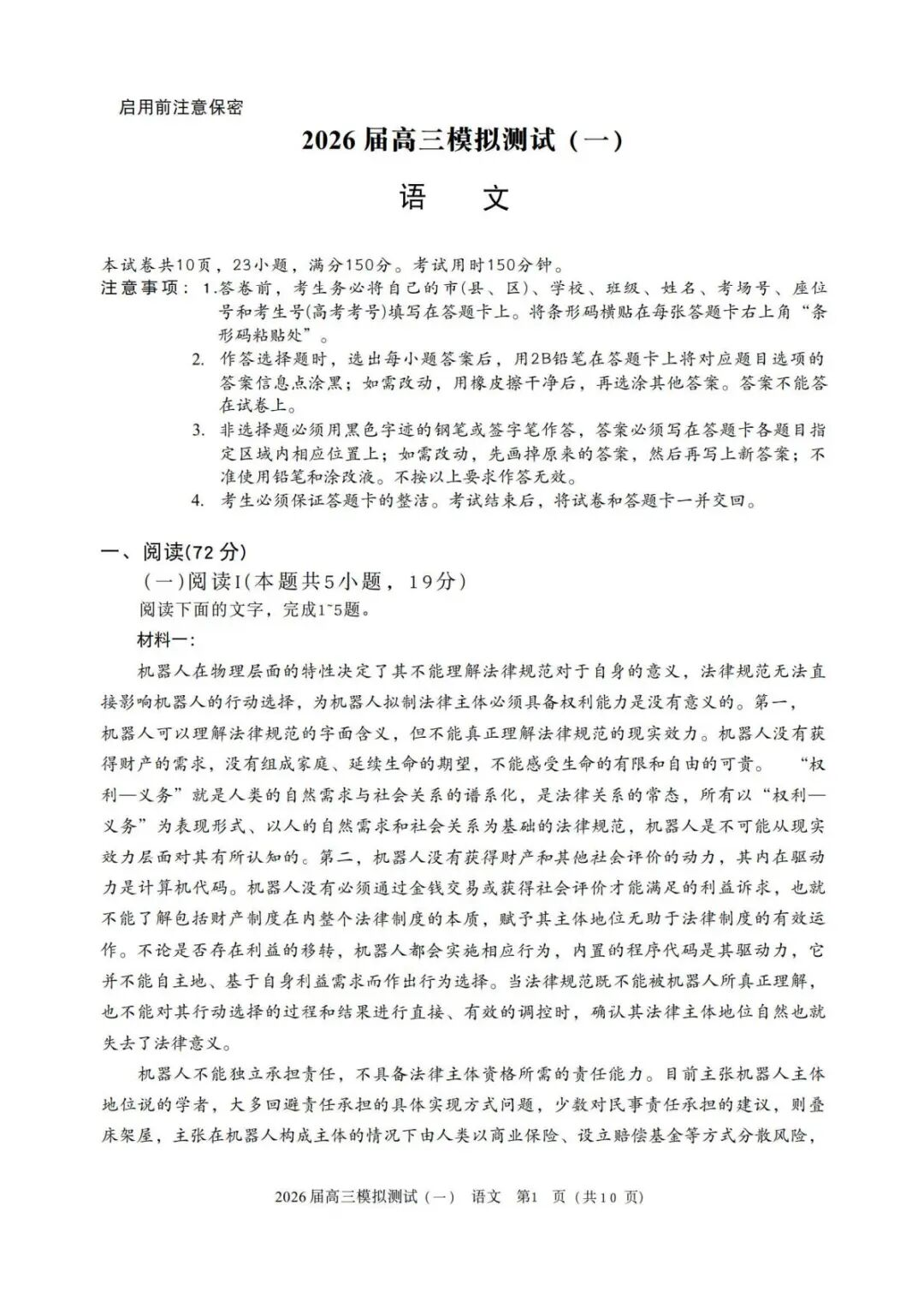中山一模2026届广东中山高三模拟测试一试卷及答案汇总