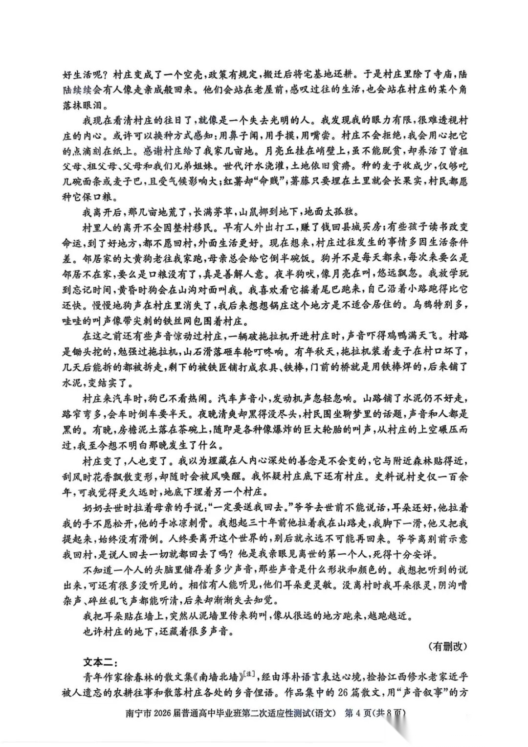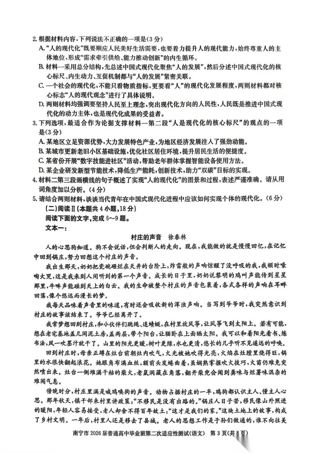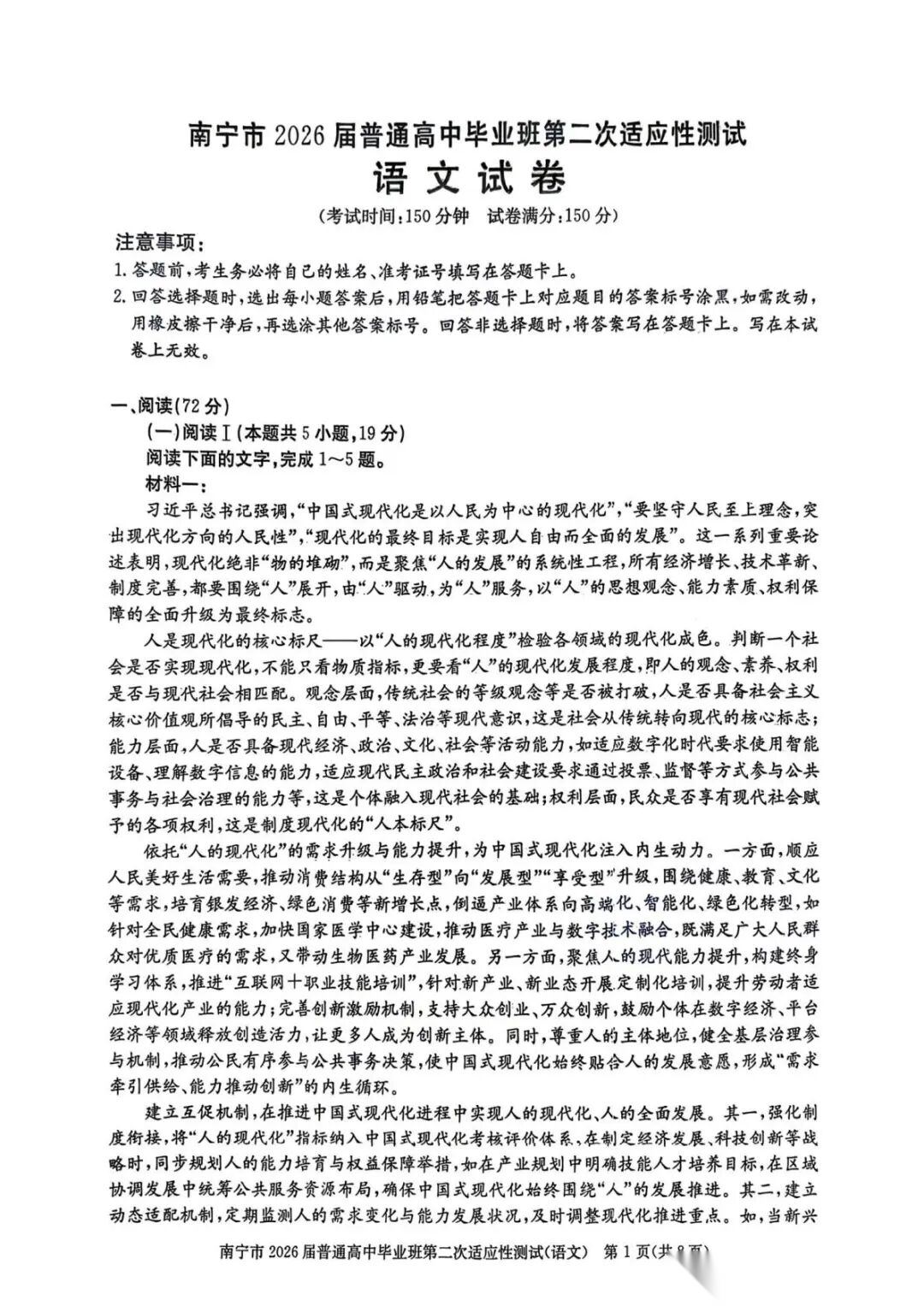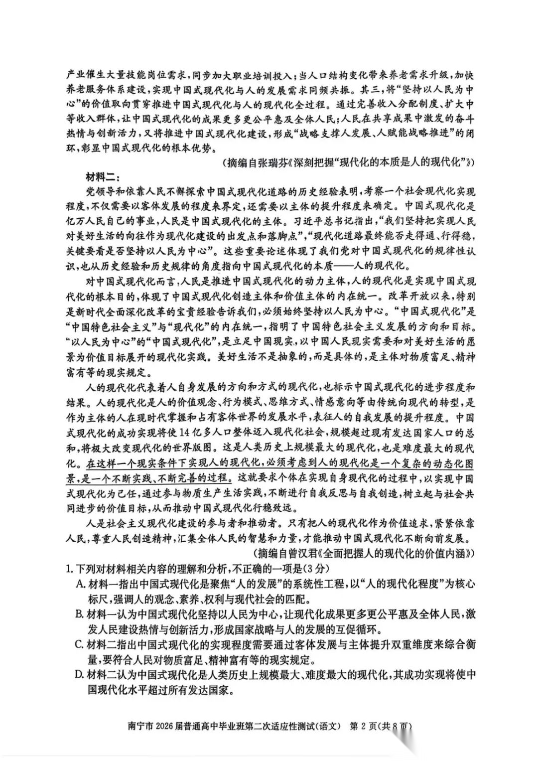 南宁二模2026届普通高中毕业班第二次适应性测试试卷及答案汇总