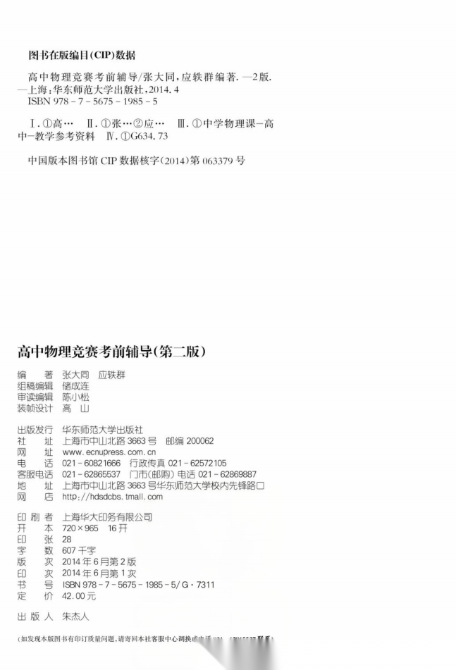 【物理竞赛】高中物理竞赛考前辅导(紧扣竞赛大纲)(第二版)---金牌教练推荐,经典竞赛教材-张大同,应轶群老师编著(448页完整版)