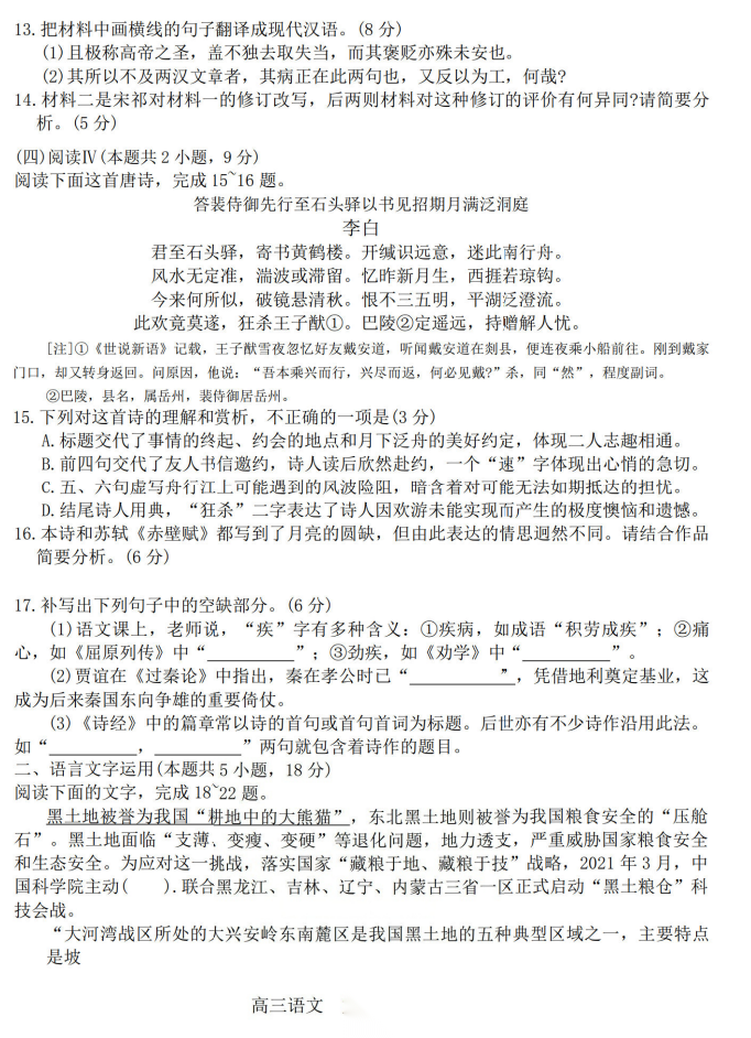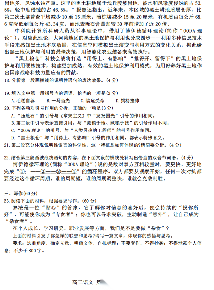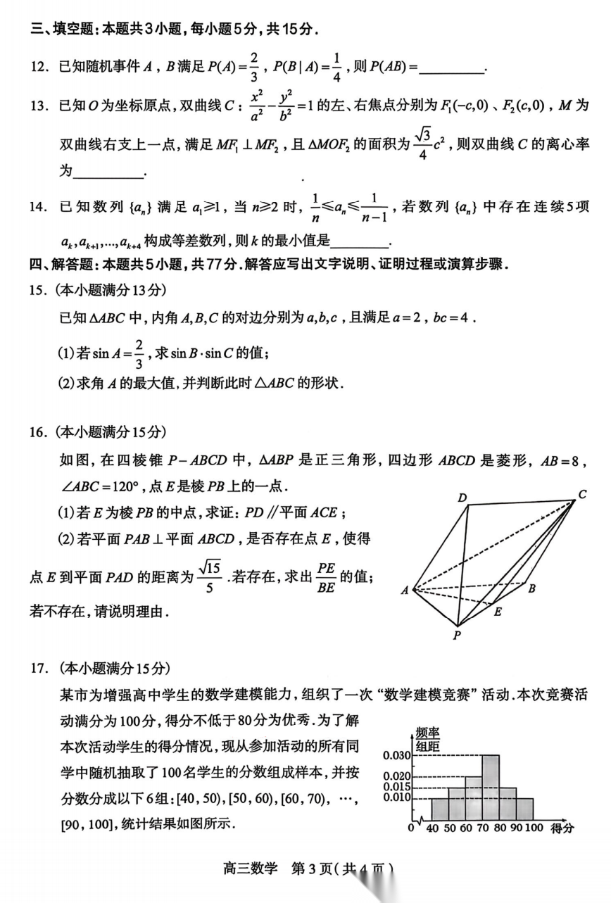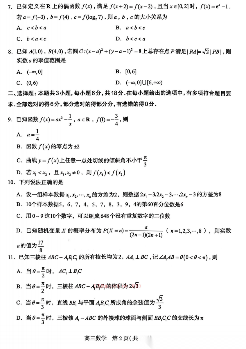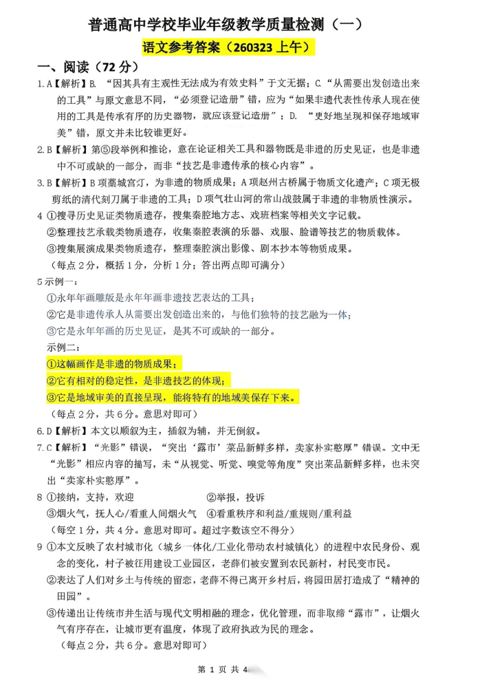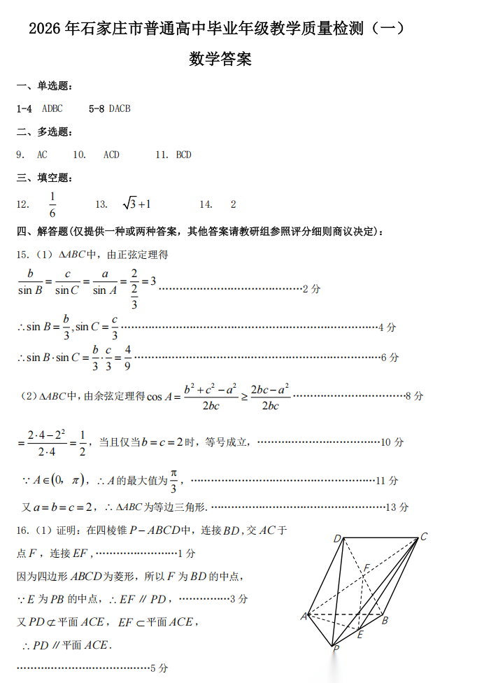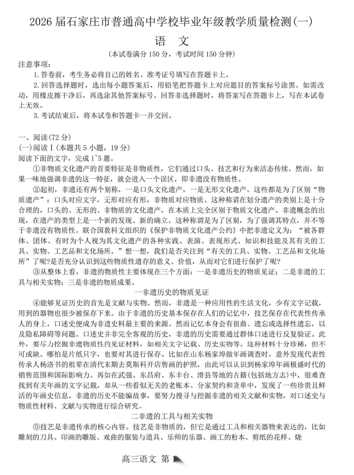 【河北卷】河北省2026届石家庄市普通高中学校毕业年级高三年级教学质量检测(一)(石家庄一模)(3.23-3.25) 数学语文试题卷+答案