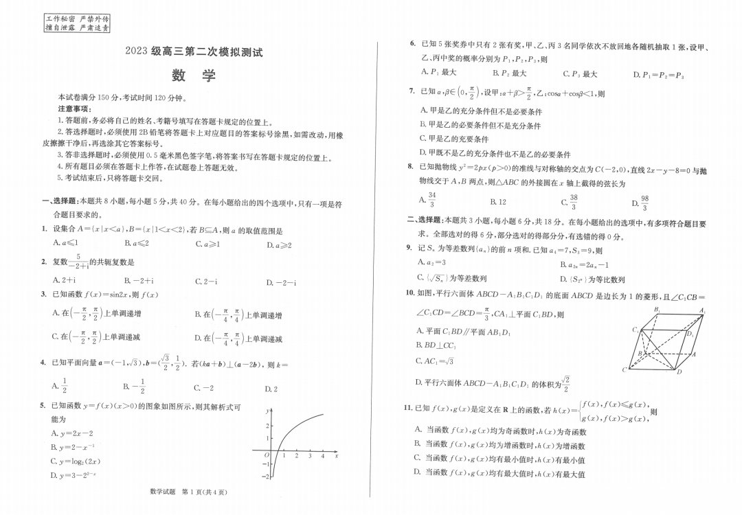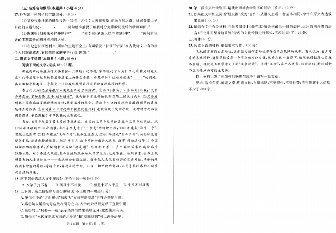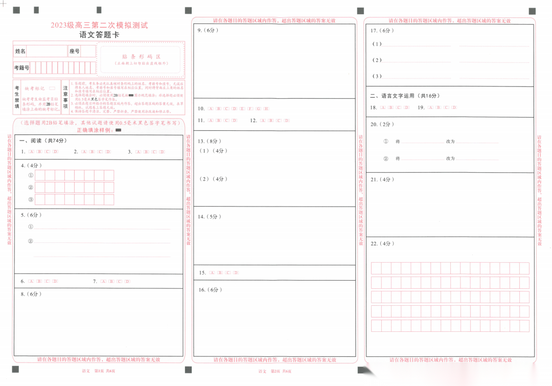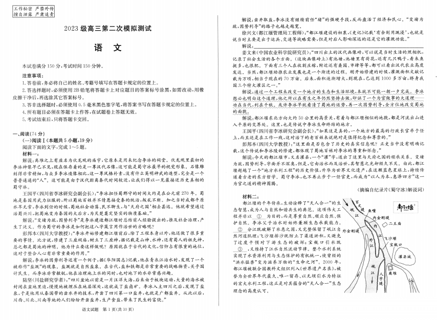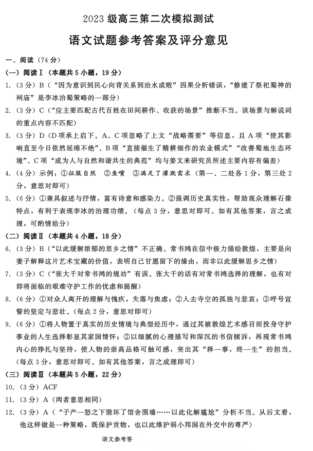 【四川卷】四川省成都市2023级(2026届)高三年级第二次模拟测试(成都二诊)(3.23-3.25) 数学语文试题卷+答题卡+答案