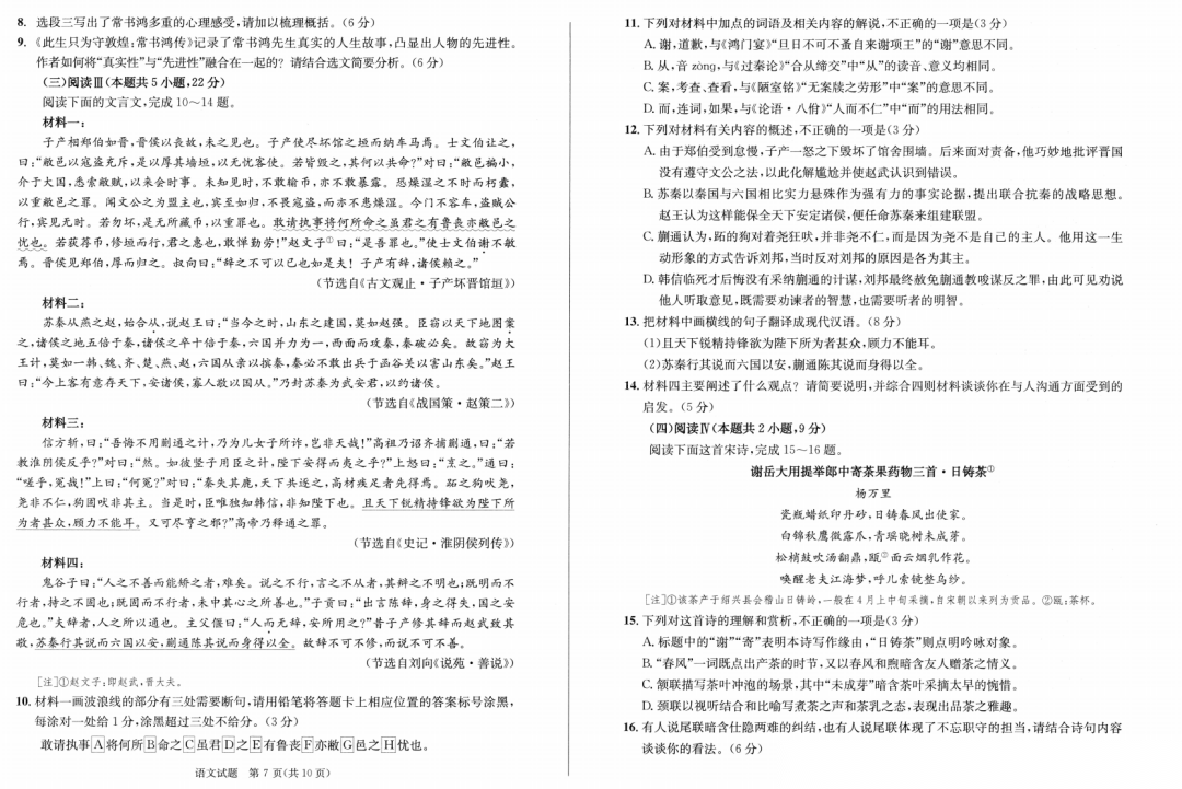 【广东卷】广东省中山市2026届高三年级下学期模拟测试(一)(中山一模)(3.23-3.25) 数学语文试题卷 【广东卷】广东省中山市2026届高三年级下学期模拟测试(一)(中山一模)(3.23-3.25) 数学语文试题...
