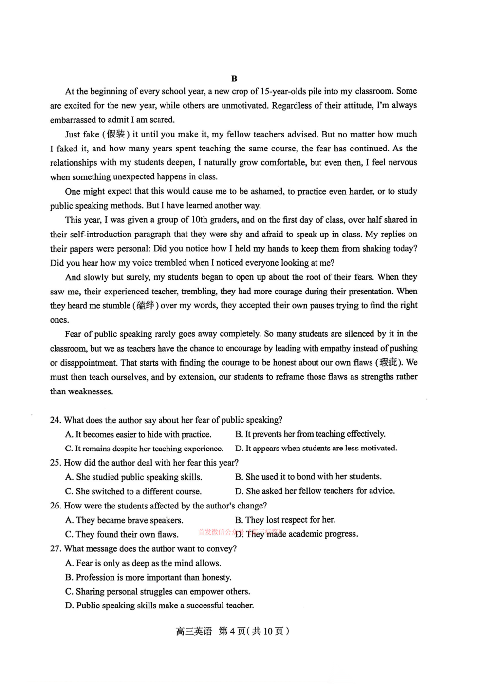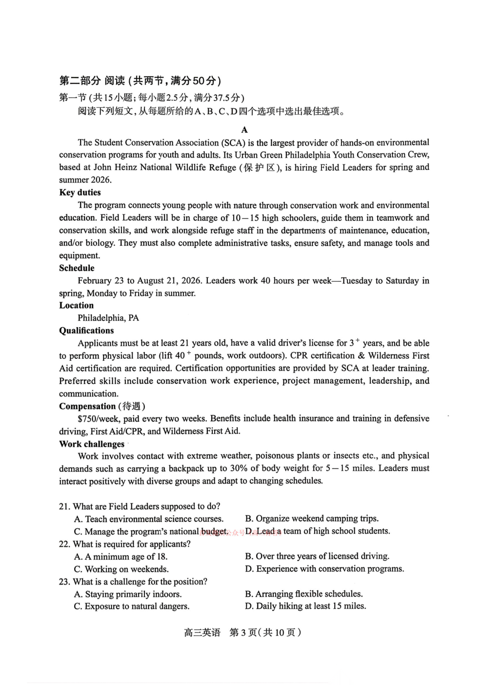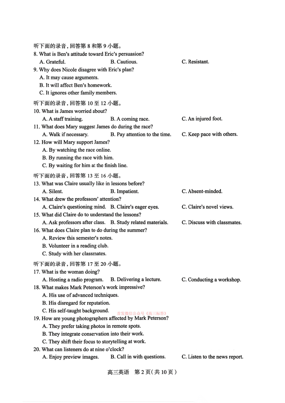 2026百师联盟高三二轮复习3月25联考一答案 2026百师联盟高三二轮复习3月25联考一答案