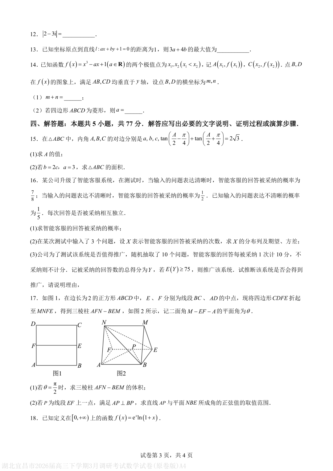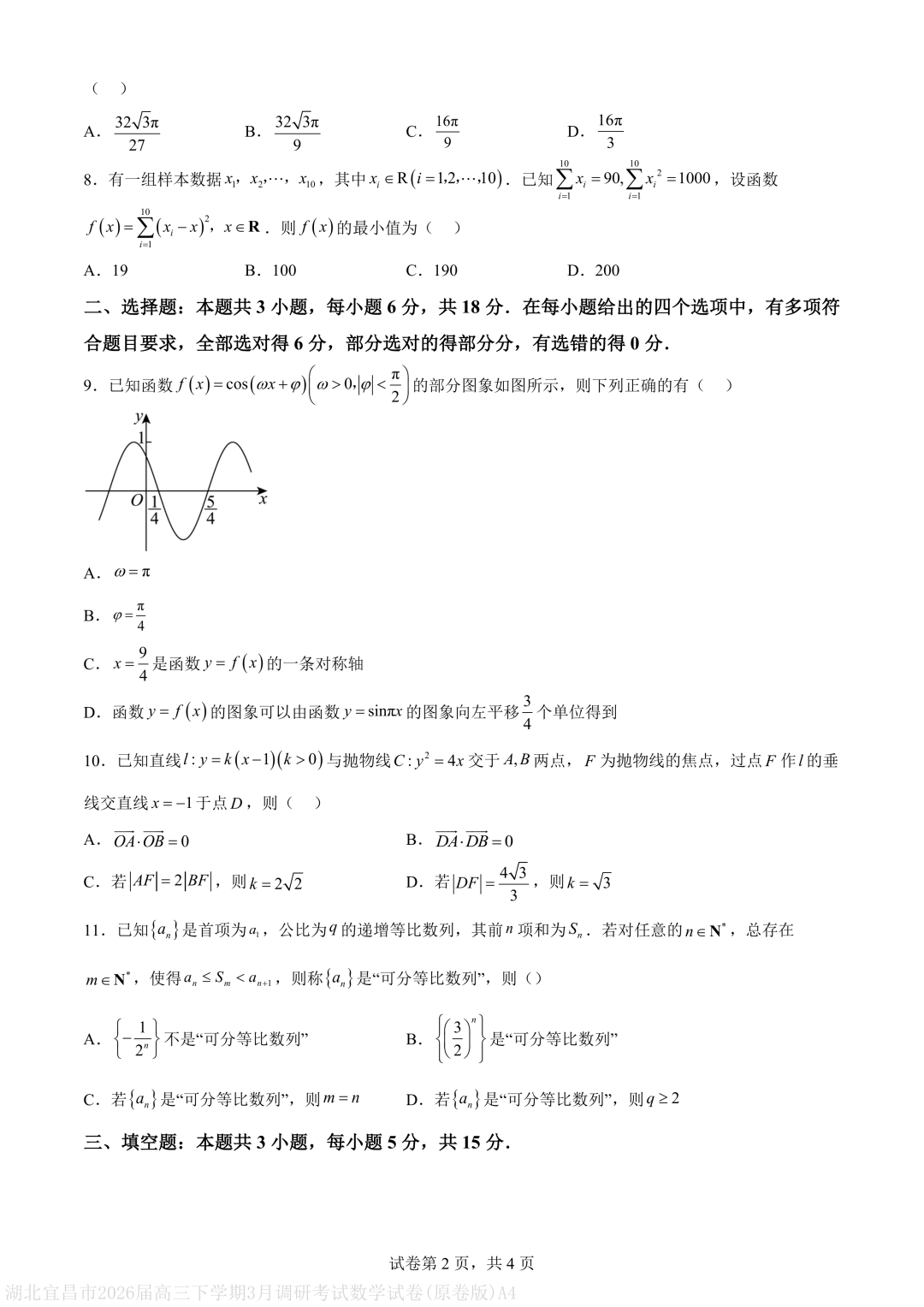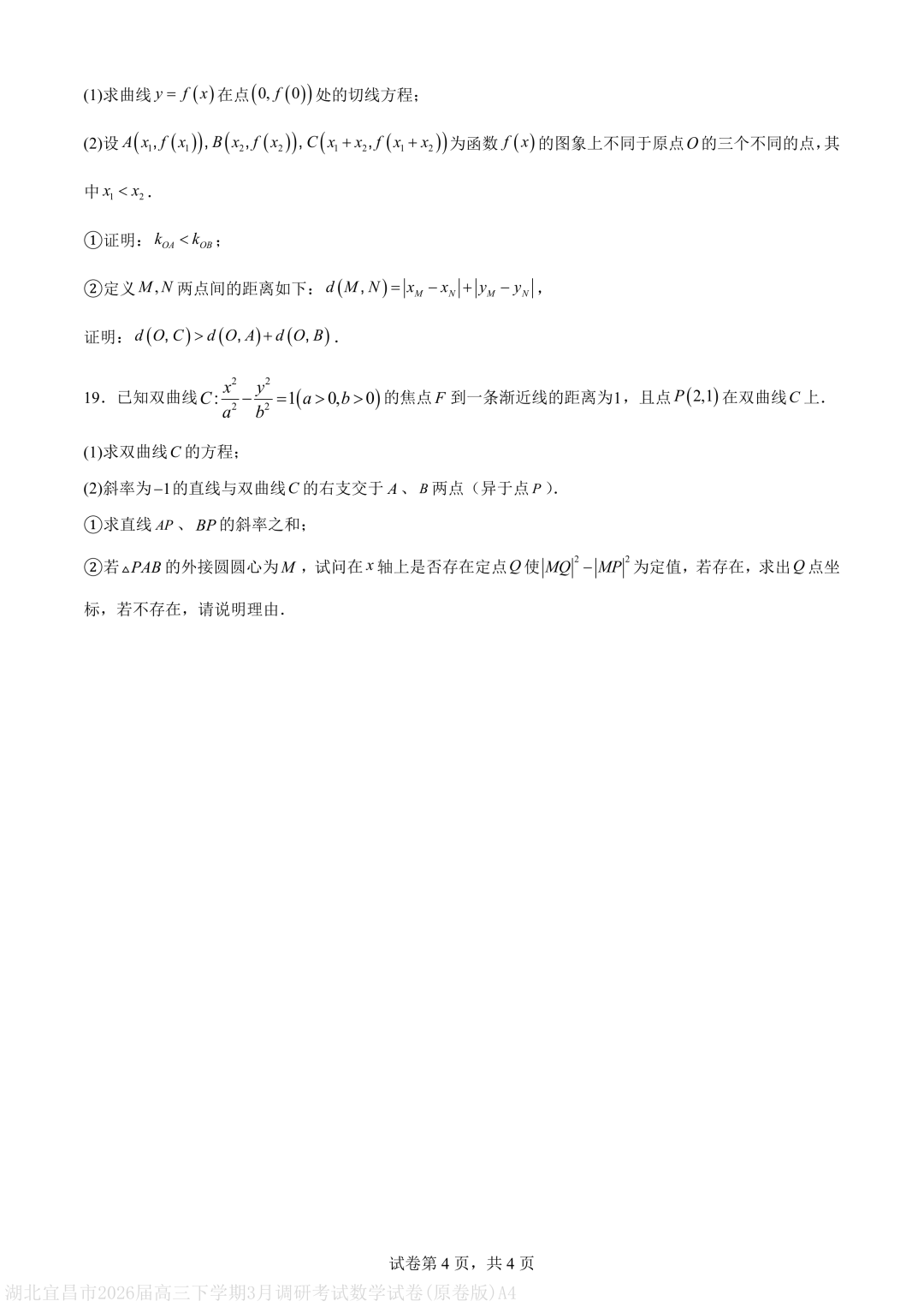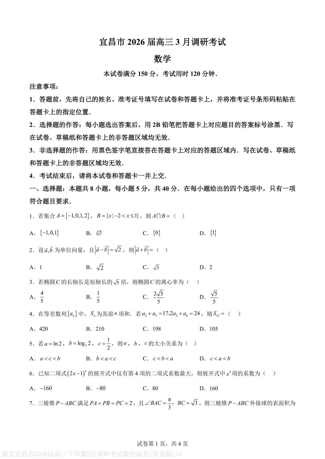 湖北省宜昌市2026届高三下学期3月调研考试(宜昌二模)