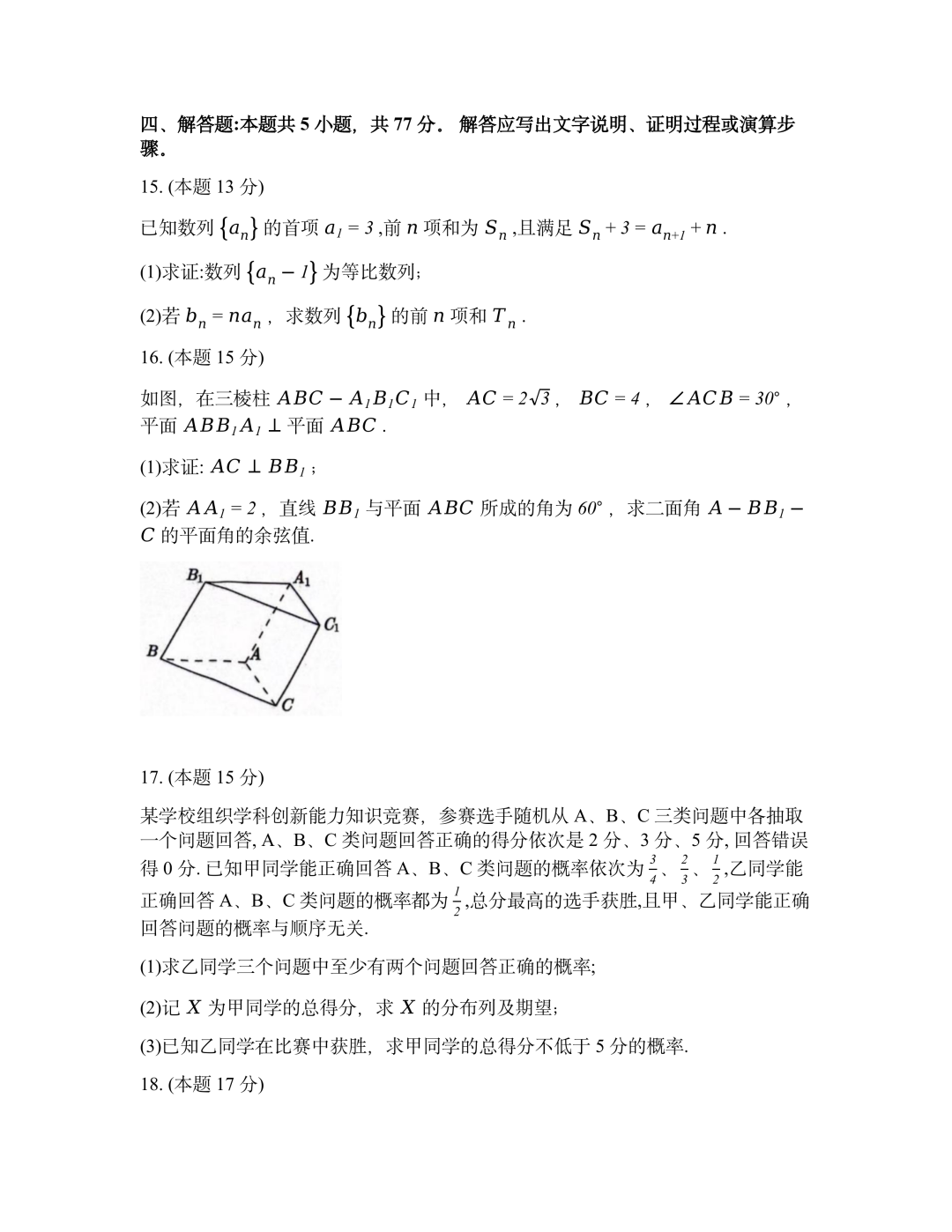 宁夏育才中学2026 届高三下学期3月一模考试 宁夏育才中学2026 届高三下学期3月一模考试