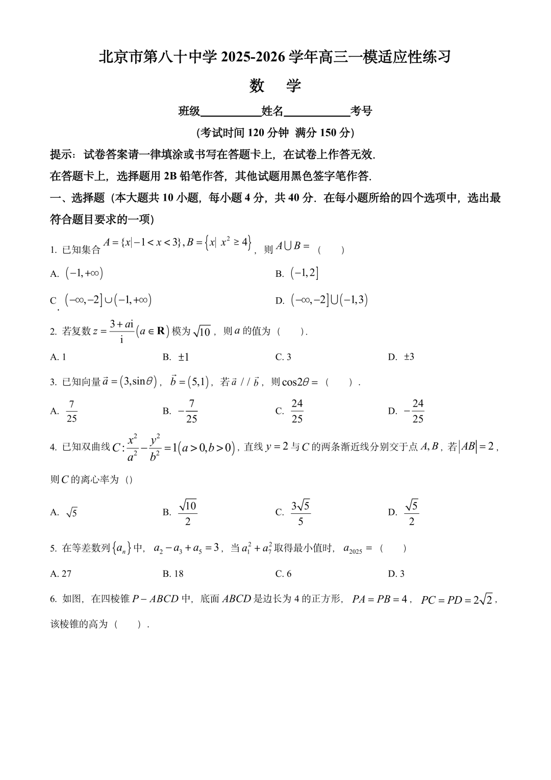 重庆市第八中学2026届高考适应性月考卷(六) 重庆市第八中学2026届高考适应性月考卷(六)