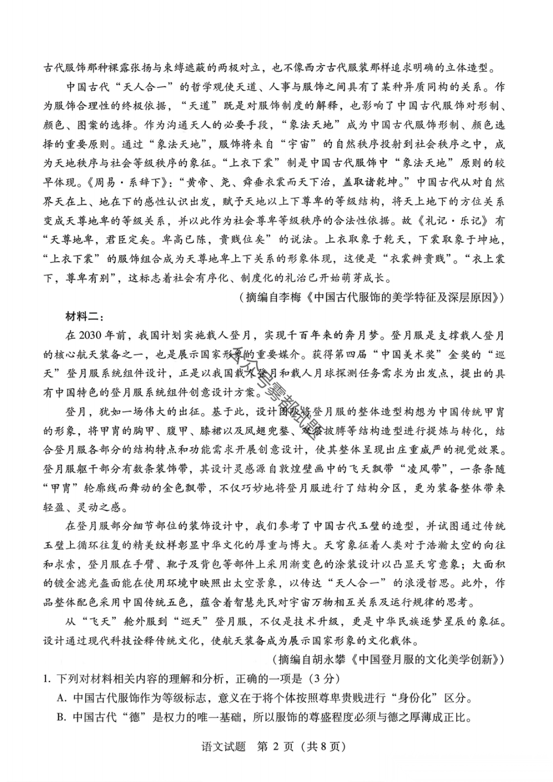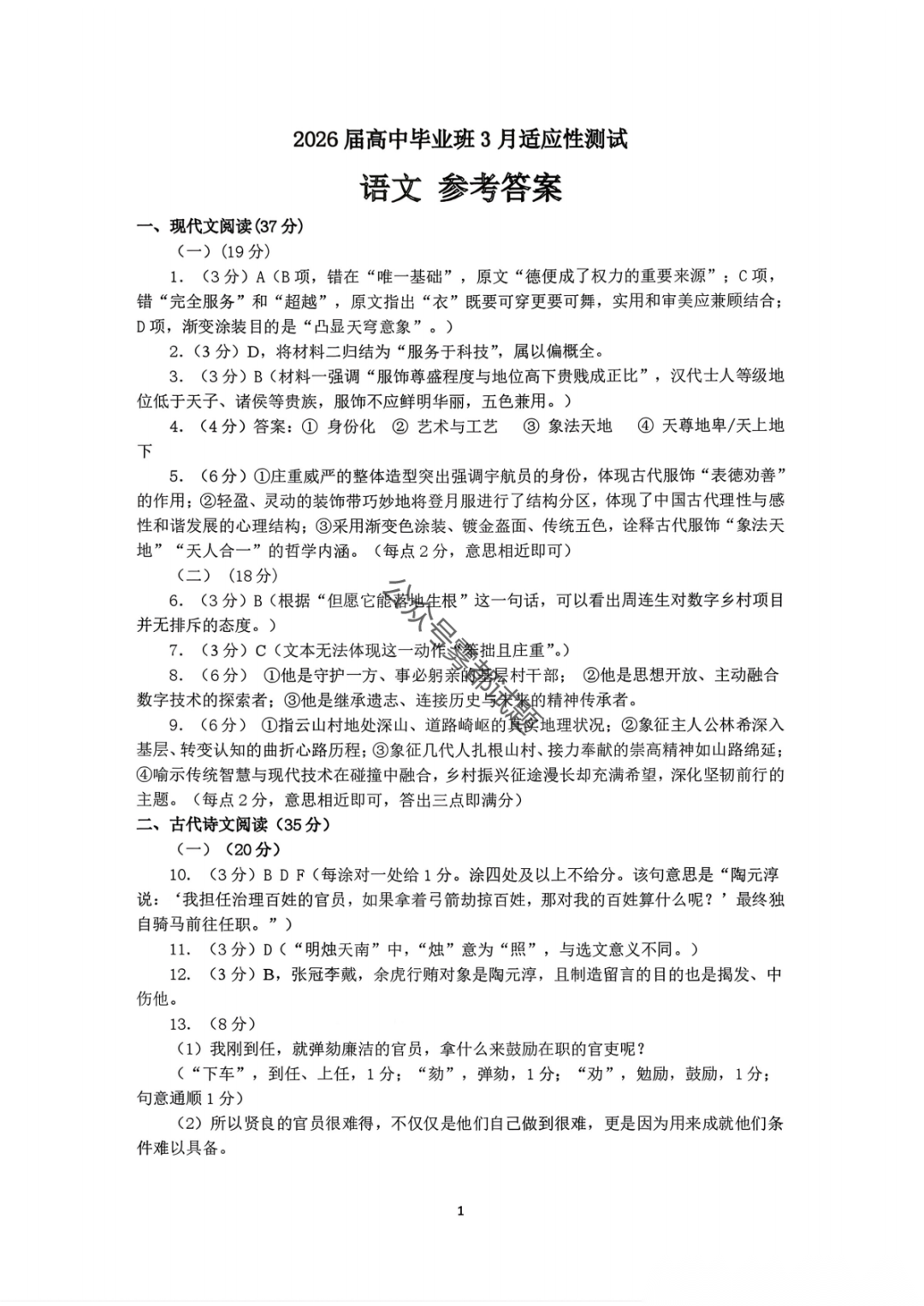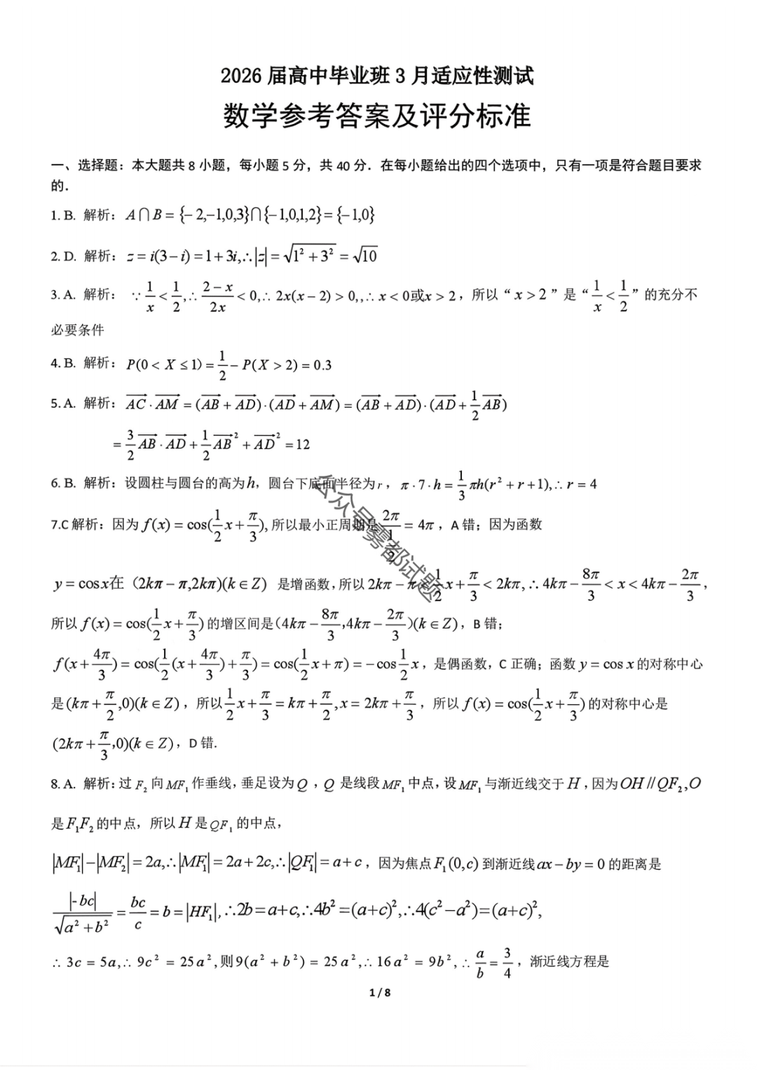 2026届广西高三跨市联考3月适应性测试答案(一模)