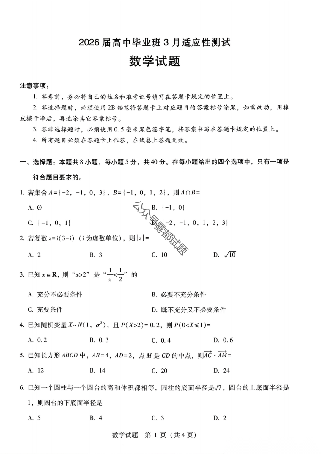 河南省五市2026届高三3月第一次质量检测 河南省五市2026届高三3月第一次质量检测